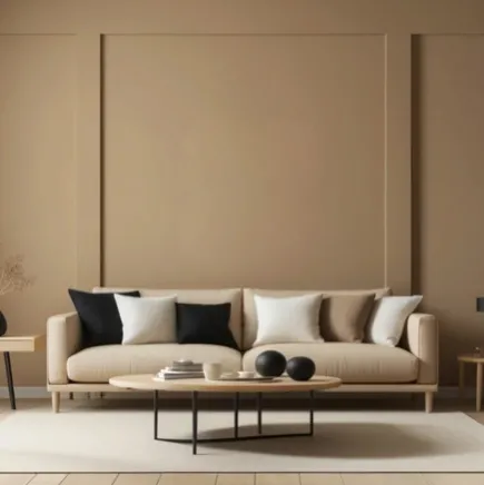 L’utilizzo classico del color cammello è per le pareti del soggiorno.