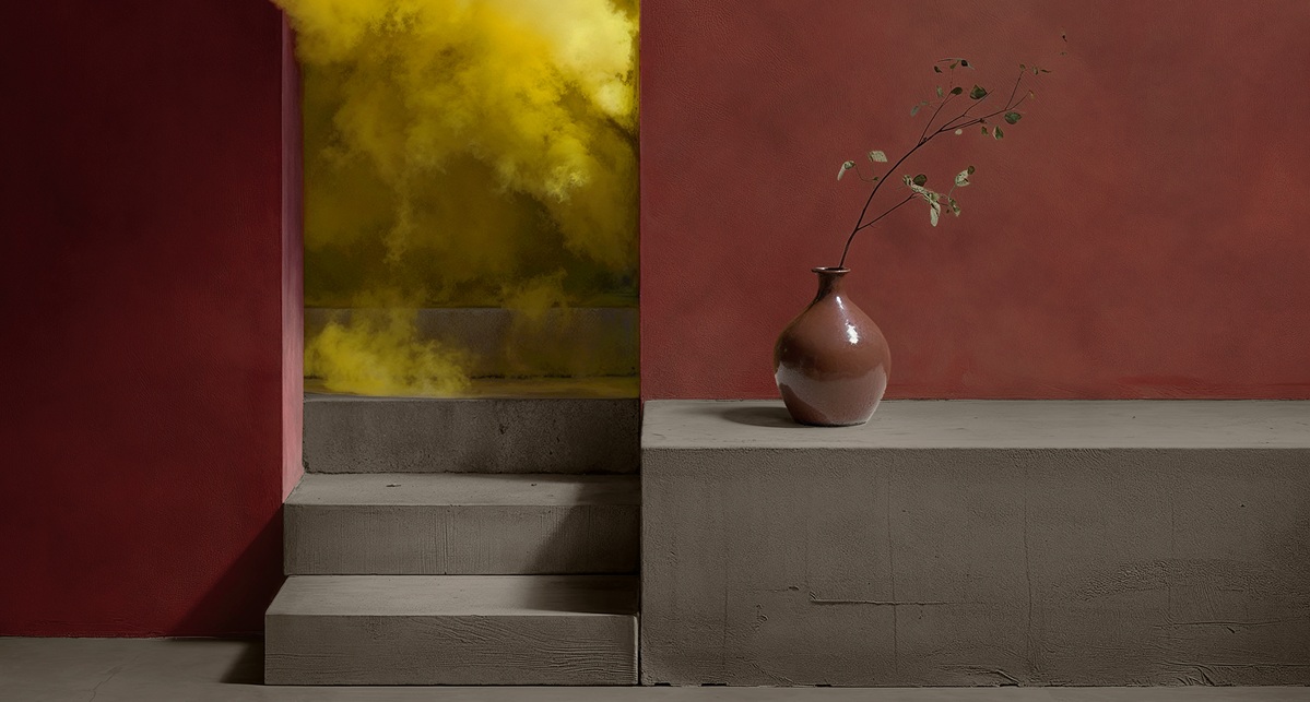 Gli ospiti si muovono tra fotografie ibride in AI realizzate dal fotografo Matteo Imbriani e campioni materici delle finiture Novacolor, scoprendo quattro universi — Grounds, Shadows, Pulses e Traces — e il Colore “luce” dell’anno: “The Light Between” (MM332). Durante l’evento, le otto opere fotografiche di Matteo Imbriani hanno creato un percorso immersivo che invitava a “sentire” il colore più che a guardarlo.