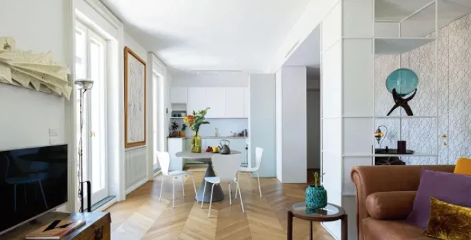 Eliminare il corridoio con un divisorio “aperto”, in parte strutturale