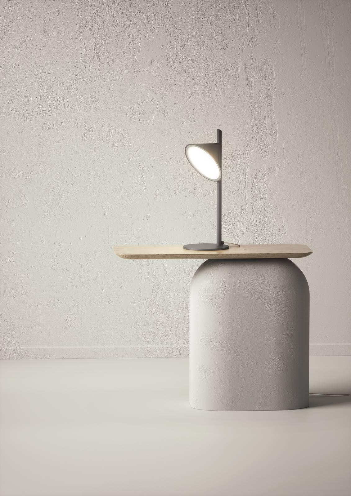 Orchid (design Rainer Mutsch) di Axolight è la versione da tavolo, pensata per la lettura, di una famiglia di apparecchi che si ispira alle forme naturali del fiore da cui deriva il nome. Il minimalismo del disegno è declinato nella esile struttura di alluminio verniciato (in tre tinte, sabbia, bianco, antracite) e nel diffusore a campana con fonte luminosa a led dimmerabile. Il fascio luminoso, sia diretto sia diffuso, è multi-direzionabile. Misure H 49 cm, base Ø 19 cm. Prezzo 425 euro + IVA. https://www.axolight.it
