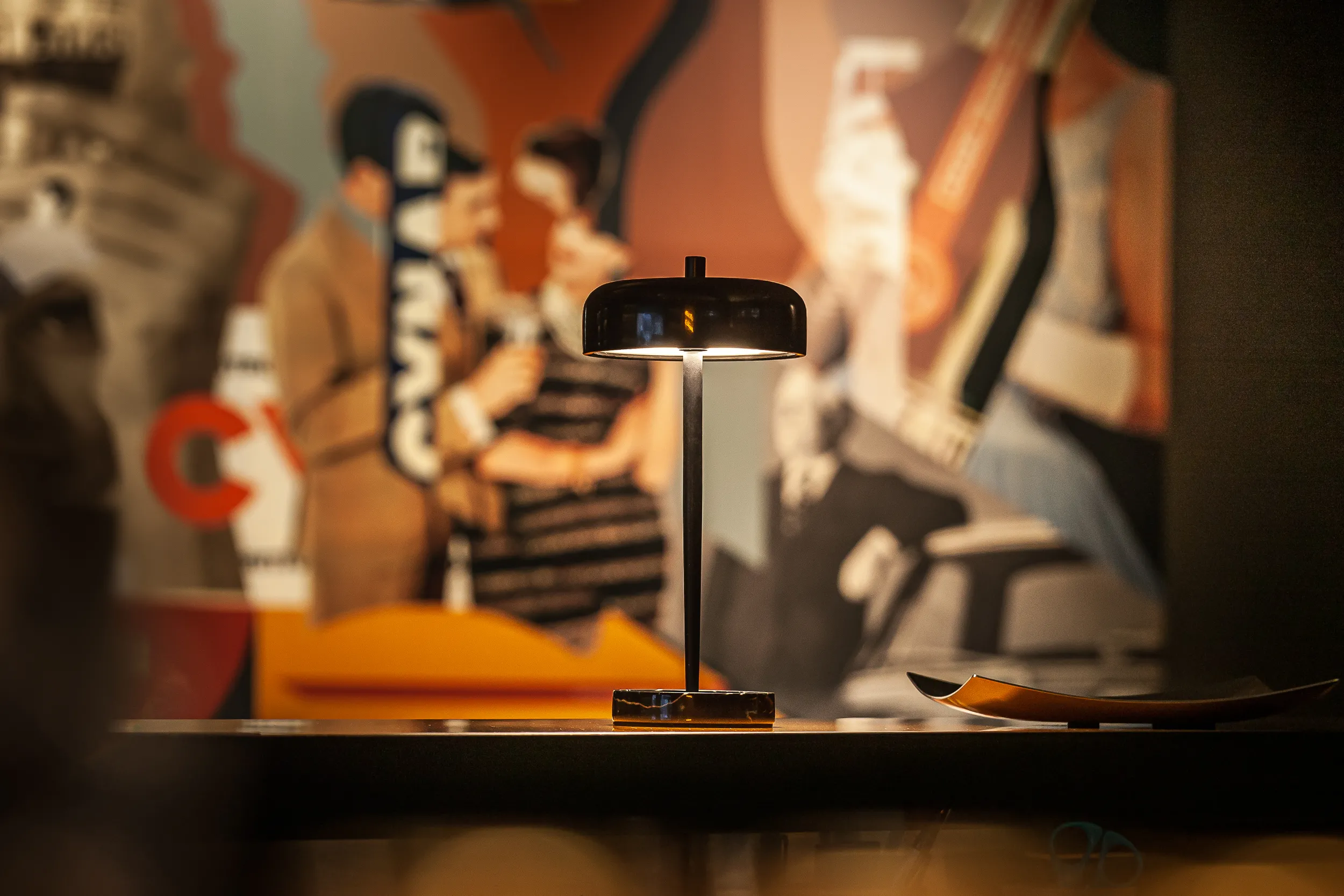Bilia Mini Portable (design Gio Ponti) di FontanaArte è la riedizione ricaricabile dell'iconica lampada disegnata dall'architetto nel 1932. Realizzata in metallo e vetro, è dimmerabile a tre intensità e garantisce un flusso luminoso di 260 lumen con una potenza totale di 1,8 W. La temperatura colore è di 2700 K, con un indice di resa cromatica superiore a 90, per una luce calda e di alta qualità. www.fontanaarte.com
