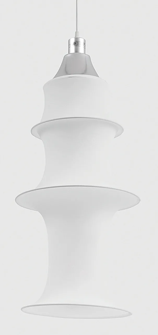 Scegliere un modello con geometrie stratificate o superfici opalinate permette di illuminare uniformemente la tavola, migliorando la convivialità. Un elemento colorato o bicolore può introdurre un accento cromatico discreto che ravviva un ambiente total white o molto neutro.