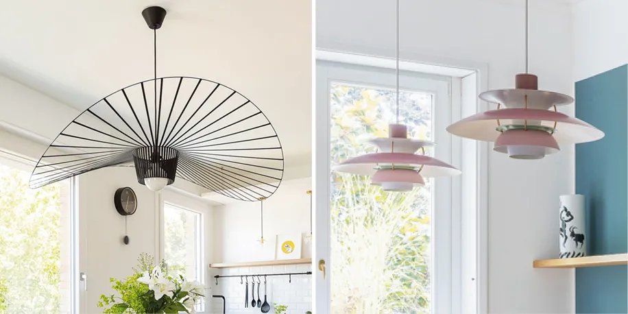In cucina, le lampade di design devono conciliare estetica e praticità. Le sospensioni di dimensioni contenute, con forme grafiche e materiali leggeri, sono perfette sopra il bancone o l’isola.