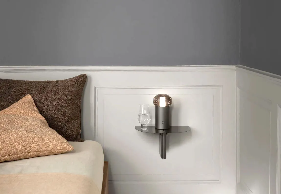 La mensola Buck di Ever Life Design permette di sfruttare al meglio lo spazio grazie alla lampada integrata: può essere posizionata accanto al letto al posto del comodino oppure all’ingresso di casa. É realizzata in metallo nero opaco ed è disponibile in due formati. Misura L 40 x P 12,2 cm. Prezzo 355,20 euro. https://www.shop.everlifedesign.it
