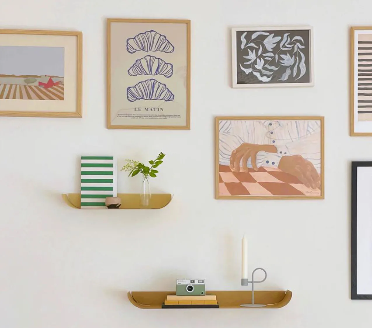 Possono essere appese tra i quadri sulla parete le mensole Alveo di Hiro, disponibili in due formati e in otto varianti di colore. Sono prodotte in acciaio verniciato con finitura goffrata antigraffio. Misurano L 45 x P 20 x H 10 cm e L 65 x P 20 x H 10 cm. Prezzo a partire da 49 euro. https://hiro.design