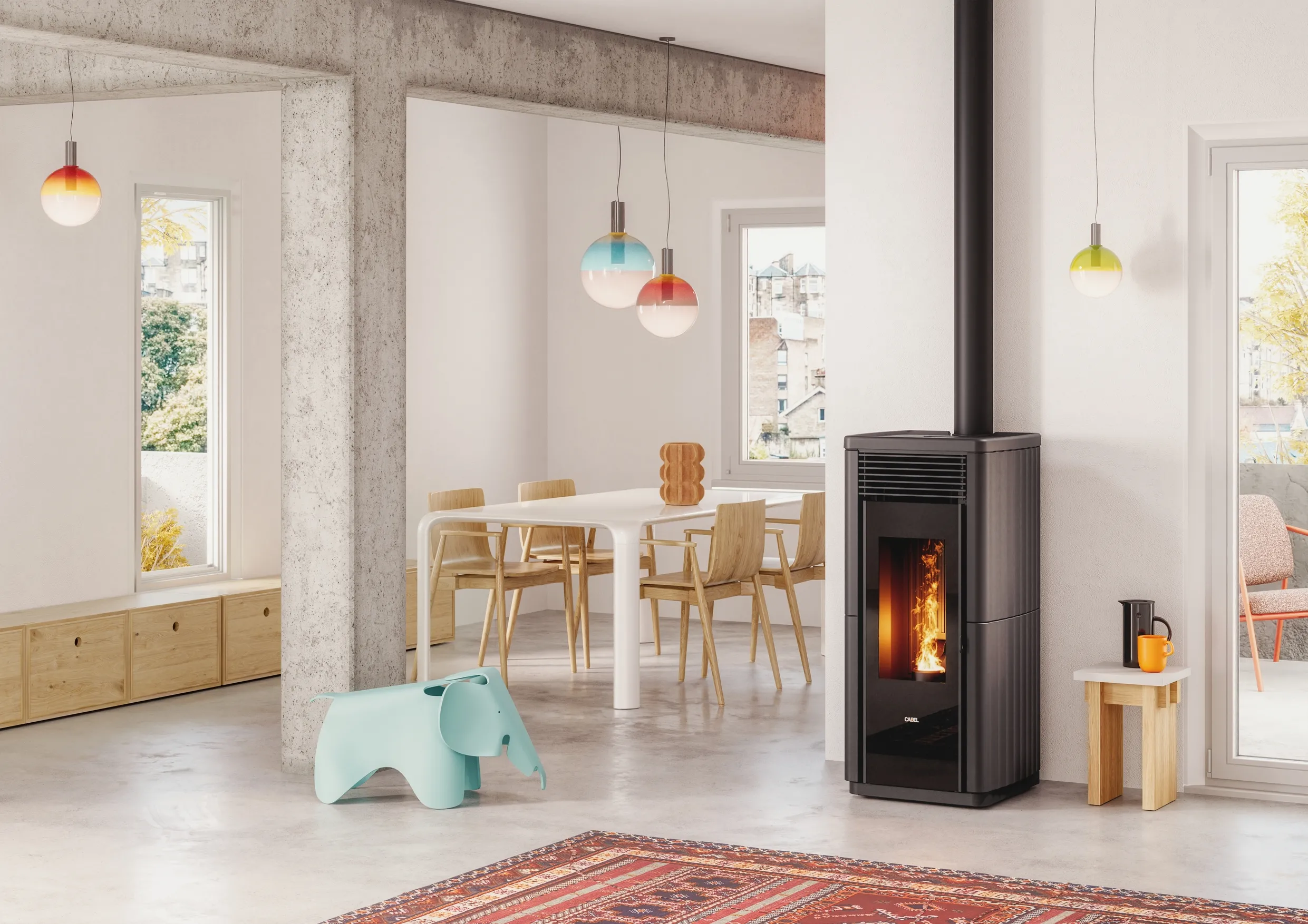 EIKO 365 di MCZ, brevettata e in classe 5 stelle, è la prima stufa a pellet che combina riscaldamento e raffrescamento, per maggiore efficienza e ingombro ridotto. Compatta e priva di unità esterna, non necessita di scarico per la condensa e richiede solo due fori nella parete perimetrale, uno per l’espulsione dell’aria calda in estate e l’ingresso di quella comburente d’inverno, l’altro per l’evacuazione dei fumi della combustione. Grazie al braciere automatico, la manutenzione è minima, con necessità di svuotare la cenere drasticamente ridotta, e la tecnologia CORE garantisce pulizia e prestazioni (ottima resa energetica, risparmio sui consumi, emissioni ridotte). Si comanda da pannello a scomparsa, telecomando opzionale con termostato ambiente o da remoto, grazie alla connessione Wi-Fi e Bluetooth. Prezzo da rivenditore. https://www.mczgroup.it