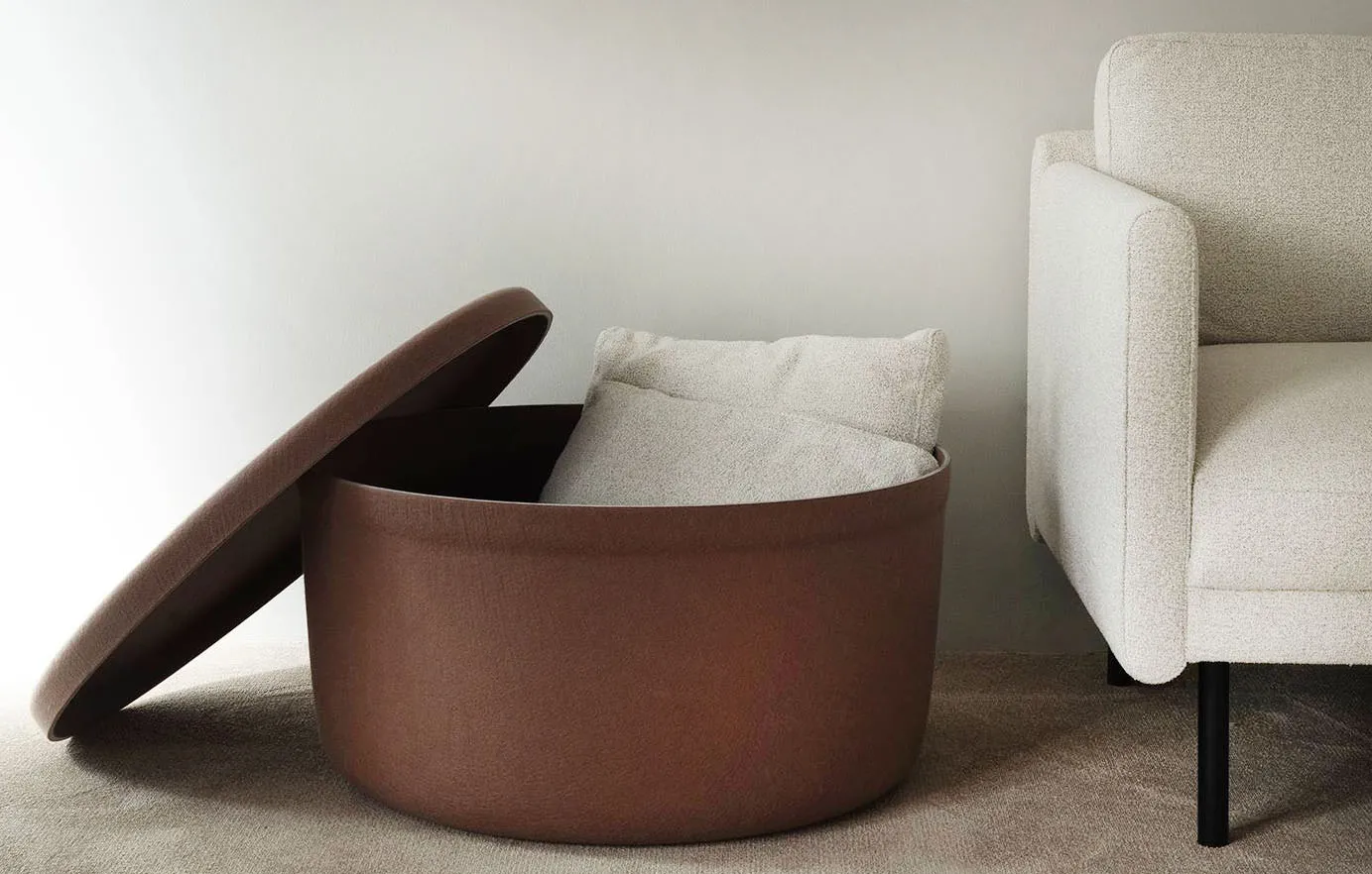 Il pouf contenitore è un complemento che racconta la casa attraverso i dettagli, contribuendo a mantenerla ordinata e accogliente, senza rinunciare al linguaggio del design. Il vano interno, capiente e discreto, consente di riporre plaid, cuscini, giochi o accessori.