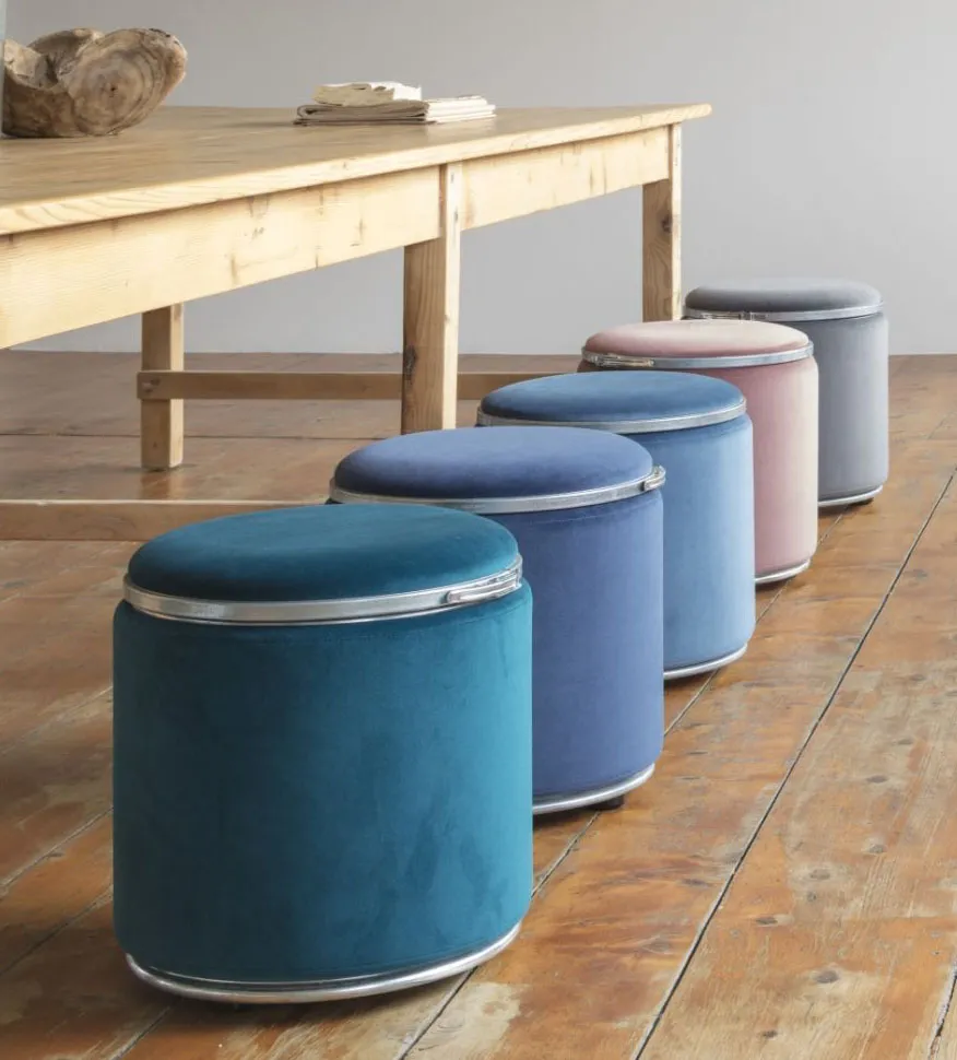 Intorno al tavolo in legno. Sostituiscono le tradizionali sedute i pouf contenitore Othello di YoumeAnd in vendita su Sediarreda. Sono ecosostenibili grazie alla struttura in cartone e acciaio riciclato, rivestita in morbido velluto disponibile in nove varianti di colore. Misurano Ø 38 x H 40 cm. Prezzo 195 euro cad. ‘https://www.sediarreda.com