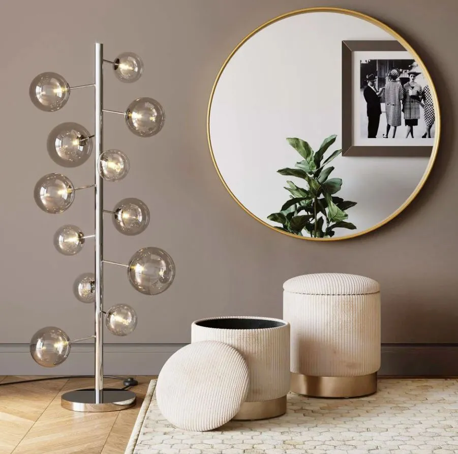 Le versioni compatte sono ideali come poggiapiedi, mentre i modelli più scenografici, rivestiti in velluto o bouclé, diventano veri protagonisti della zona giorno.