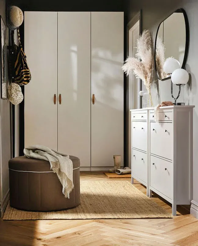 In corridoio come seduta davanti alle scarpiere. Il pouf contenitore SIDSJÖ di Ikea Italia, con il rivestimento in tessuto decorato da grandi pieghe sui lati, arreda l’ingresso; il vano interno è dotato di spaziose tasche per riporre tutto in perfetto ordine. Il coperchio si apre con facilità e resta sollevato grazie alla molla a gas. Misura Ø 70 x H 46 cm. Prezzo 179 euro. https://www.ikea.com