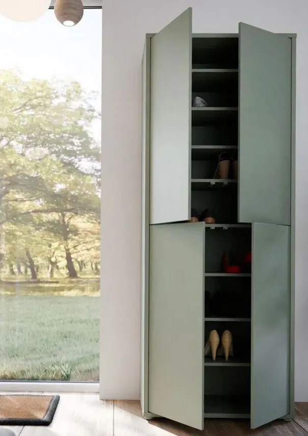 Ha l’aspetto di un armadio con quattro ante la capiente scarpiera Micol in vendita da Conforama che permette di tenere in ordine l’ingresso, il corridoio o lo sgabuzzino grazie ai numerosi vani interni. La struttura è realizzata in pannello melaminico verde salvia. Misura L 74,5 x P 35 x H 192 cm. Prezzo 293 euro (prezzo Confocard 249,05 euro). https://www.conforama.it