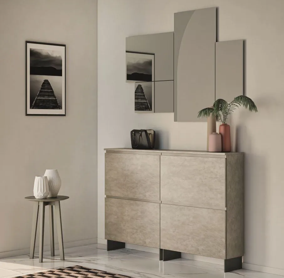 Per un effetto gradevole, laddove la scarpiera sia inserita a vista negli ambienti, conta molto scegliere finiture coerenti con lo stile domestico. La soluzione migliore, potendola scegliere, è quella di integrare uno o più moduli scarpiera in armadiature all’ingresso oppure coordinarla con altri arredi come appendiabiti, specchi, consolle… per un effetto coordinato.