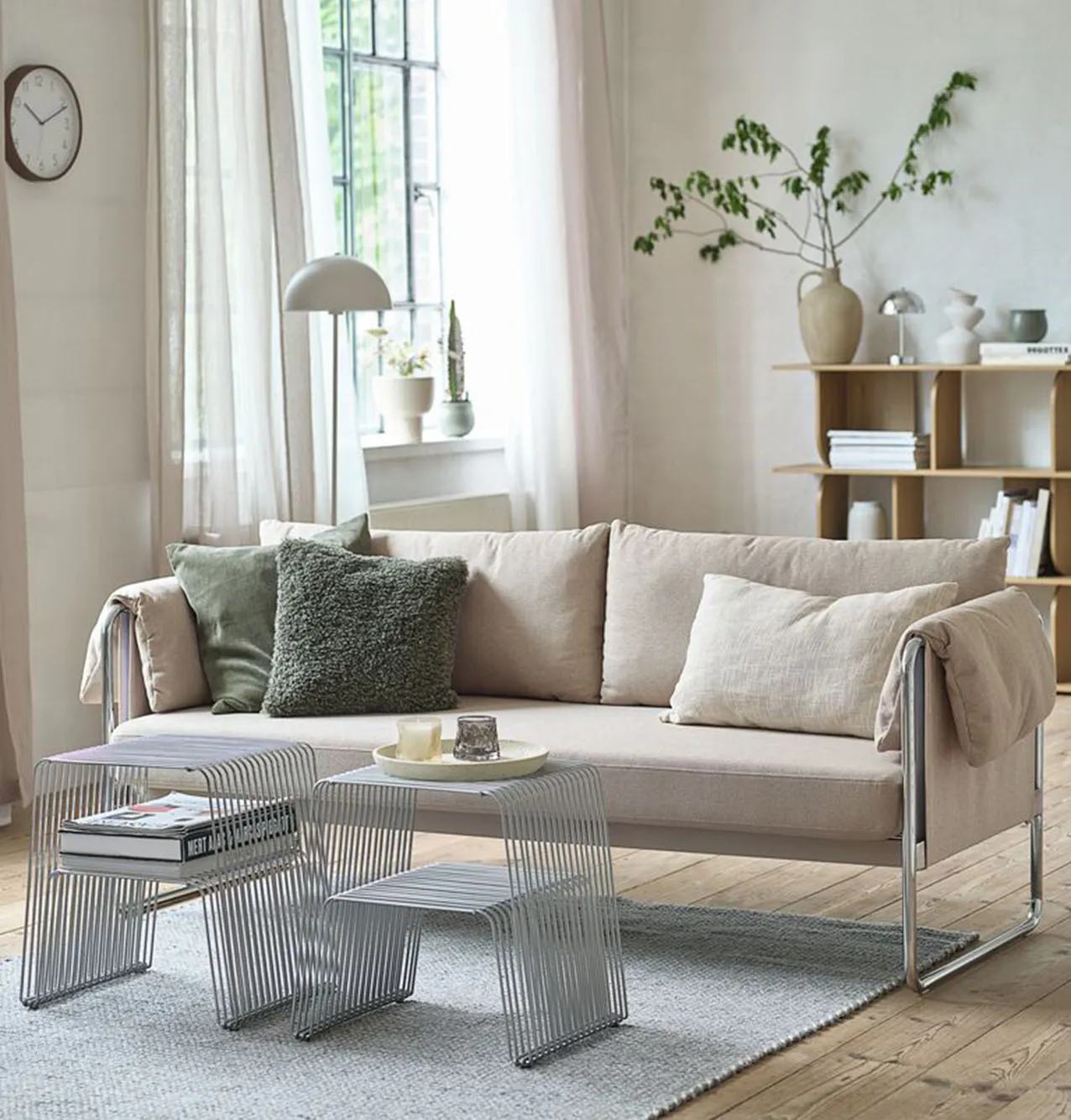 Il divano tre posti Hedehusene di Jysk è caratterizzato dai sostegni in metallo cromato che mettono in risalto il tessuto beige del rivestimento; i cuscini del sedile hanno le molle insacchettate e l’imbottitura in schiuma come lo schienale. Misura L 200 x P 75 x H 70 cm. Prezzo 349 euro. https://jysk.it