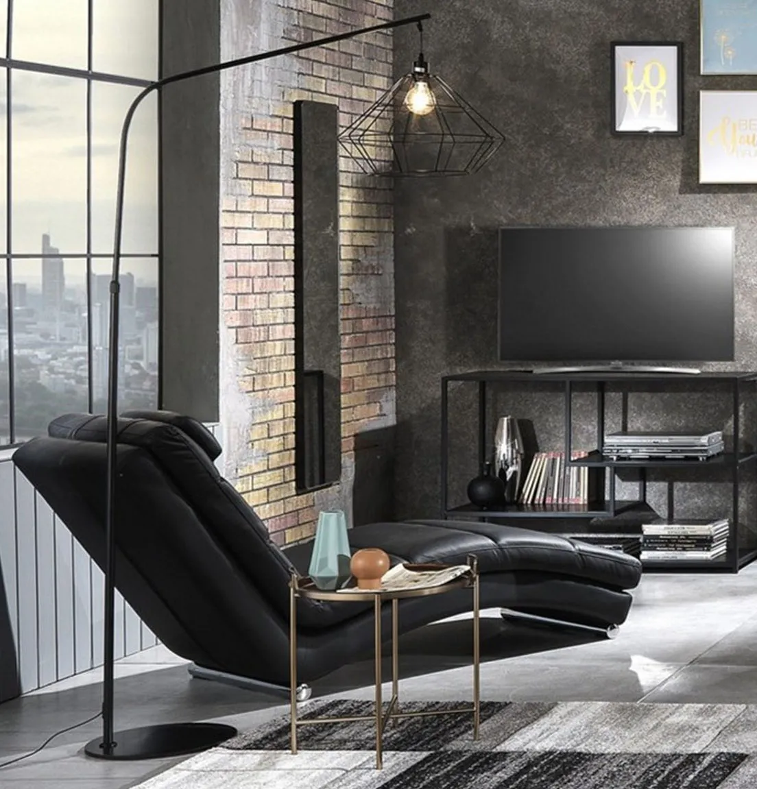 Moderna in ecopelle nera per zona relax tv, anche per ambienti industrial