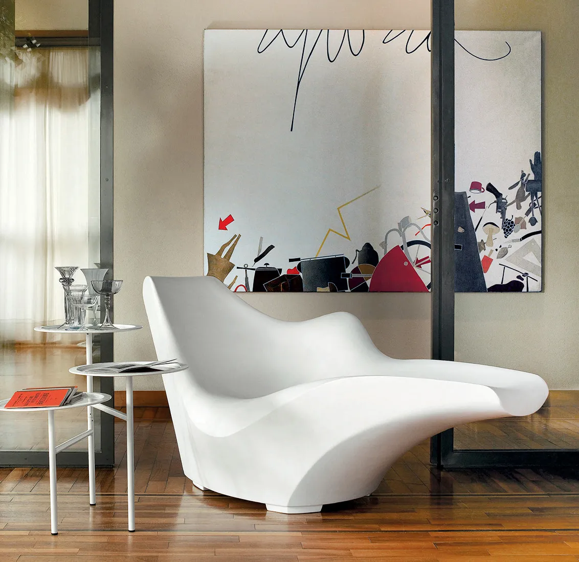 A differenza del divano, pensato per la convivialità, la chaise longue è un arredo profondamente personale. In questo senso ricorda la tradizionale “poltrona del nonno”: un luogo tutto per sé, in cui leggere, riposare o semplicemente rilassarsi.