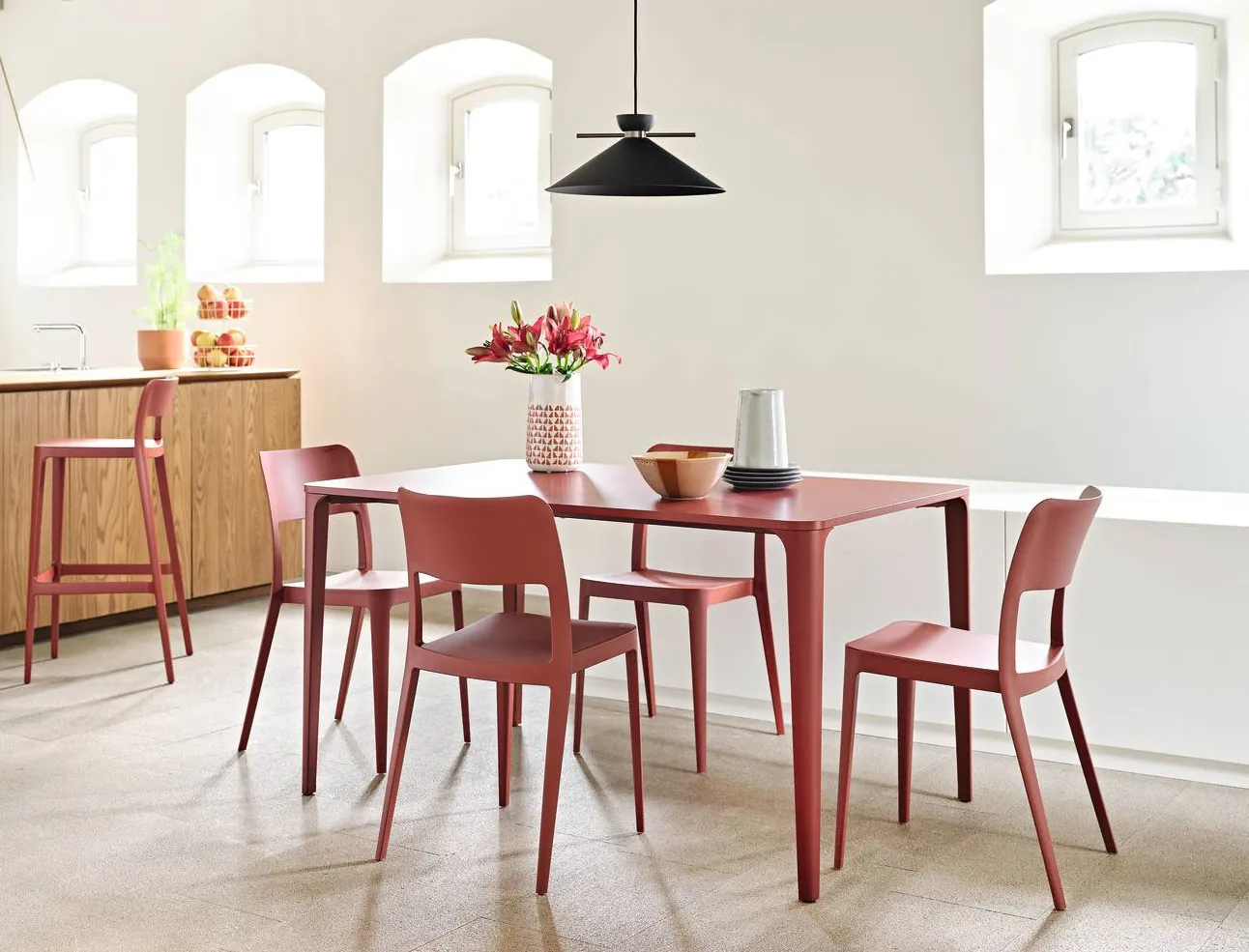 Resistente e solido polipropilene rosso per le sedie Nenè di Midj che rallegrano la cucina bianca; sono impilabile fino a dieci unità e adatte anche all’ uso esterno. Si possono scegliere fra undici varianti di colore. Misura L 44 x P 49 x H 81 cm. Prezzo a partire da 139 euro cad. https://www.midj.com