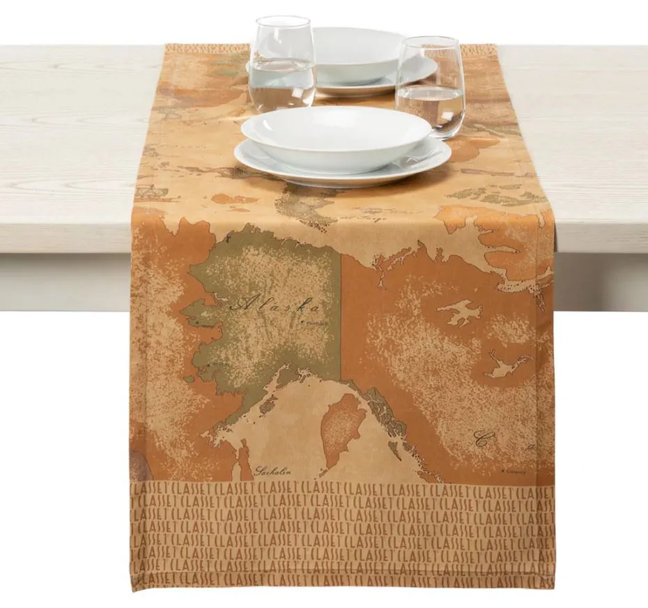L’iconica stampa di Alviero Martini 1A Classe per il runner Geo Classic di Caleffi; è realizzato in puro cotone ed è disponibile in due varianti di colore. Può essere usato su una tovaglia, come centrotavola decorativo, o per apparecchiature informali. Misura L 50 x P 150 cm. Prezzo 27 euro. https://www.caleffionline.it