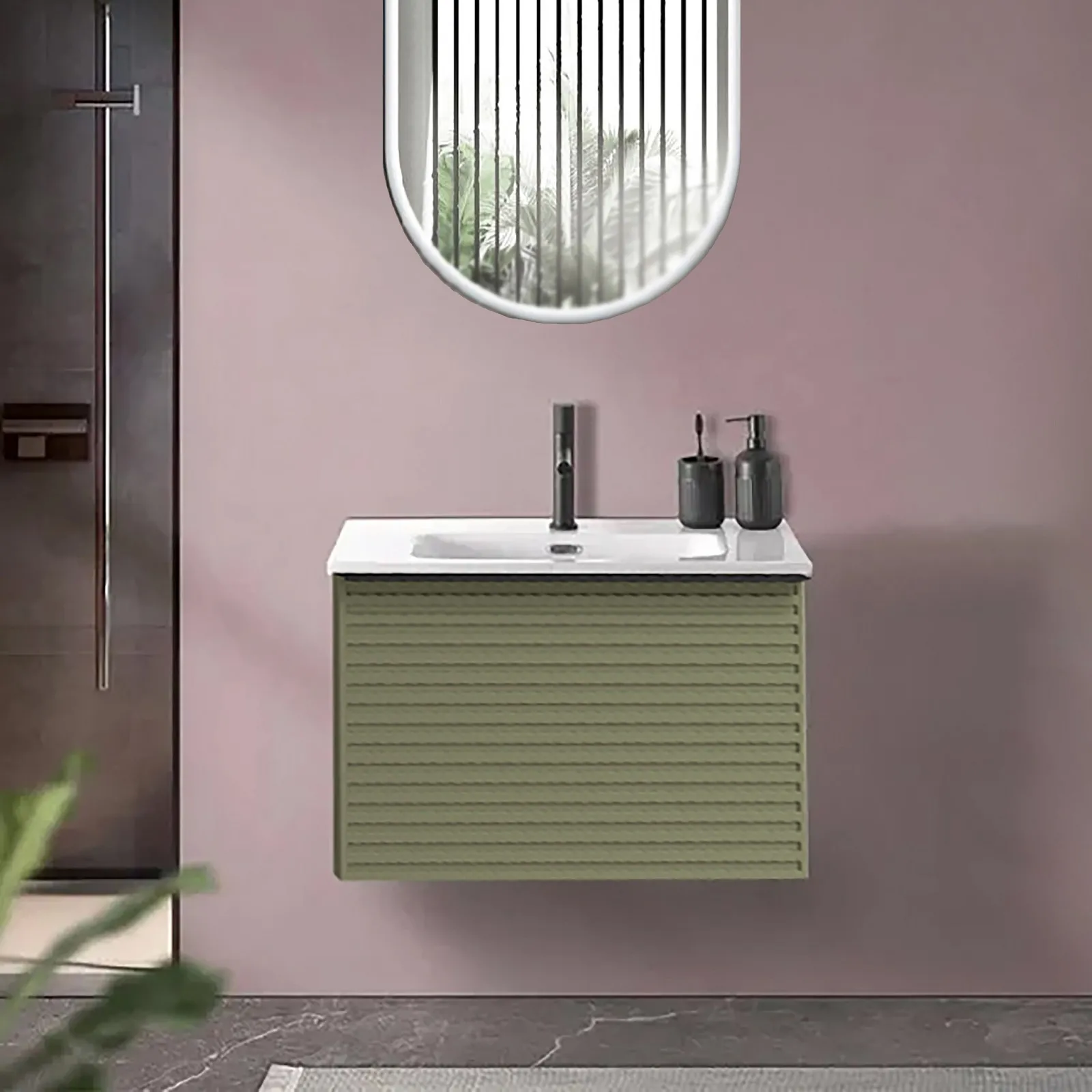 È colore verde salvia il mobile sottolavabo sospeso Pixel di Leroy Merlin con un cassetto e lavabo da incasso. Misura L 60 x P 45,5 x H 40 cm. https://www.leroymerlin.it