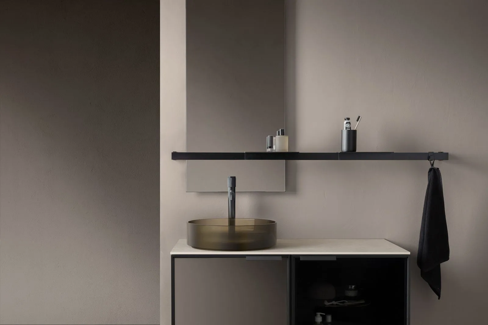 Il secondo asse è quello della modularità. L’arredobagno diventa sistema componibile, capace di adattarsi a spazi diversi e di evolvere nel tempo. Le configurazioni si moltiplicano senza perdere coerenza, permettendo una progettazione sempre più sartoriale.
