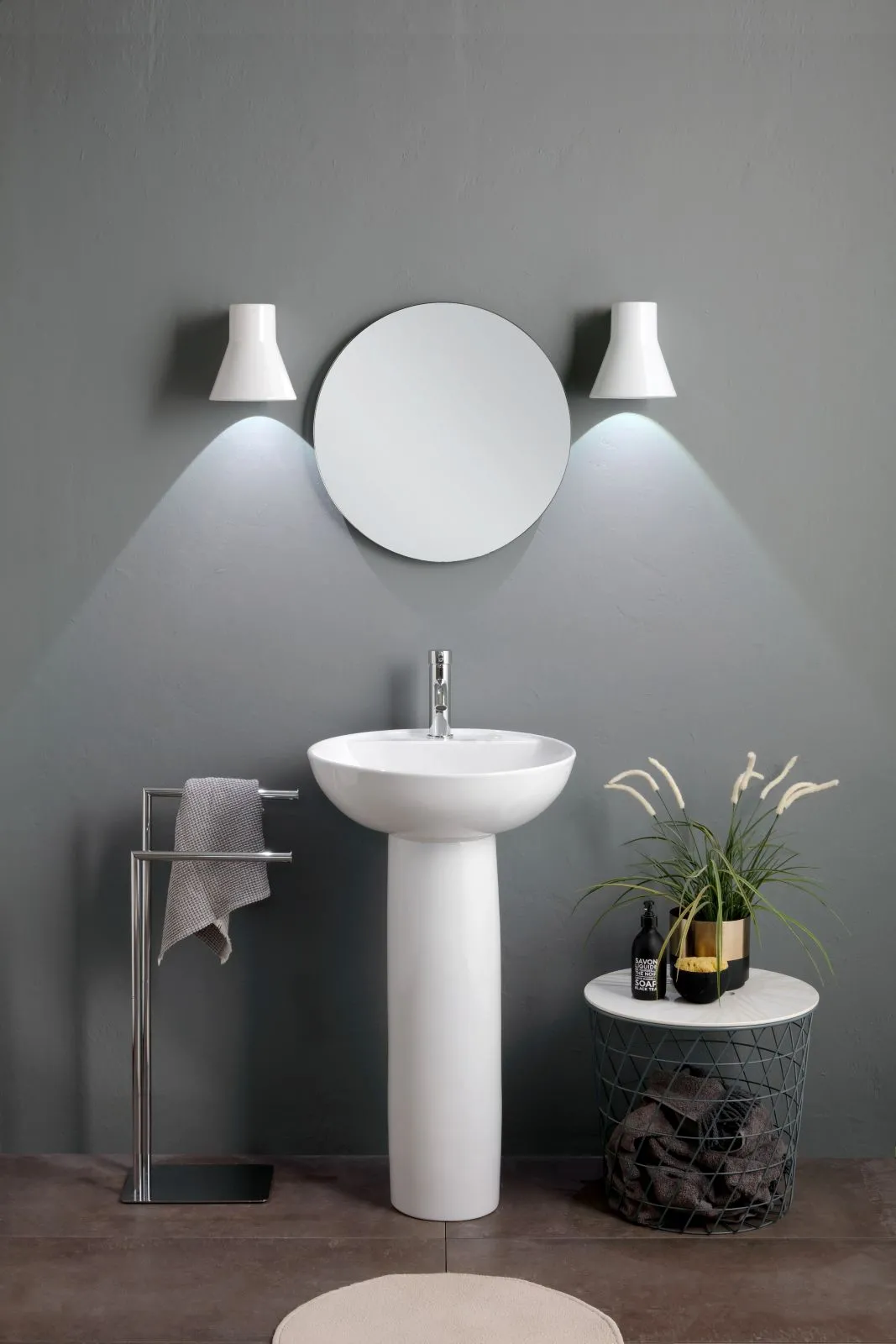 Il migliore effetto dal punto di vista estetico si ottiene quando il lavabo a colonna freestanding è posizionato libero nell’ambiente, lontano dalle pareti o a centro stanza. Dunque meglio scegliere un punto che riesca a valorizzarne la presenza scenica, evidenziandone l’espressività formale.