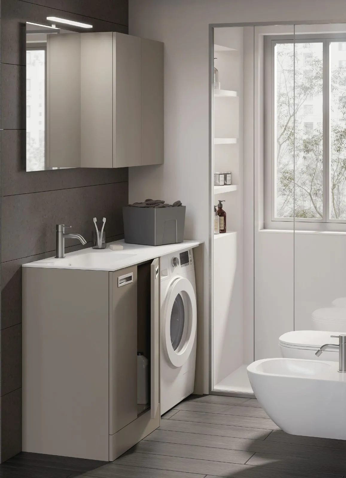 • 120/130 cm circa di larghezza per affiancare un mini lavatoio alla lavatrice.