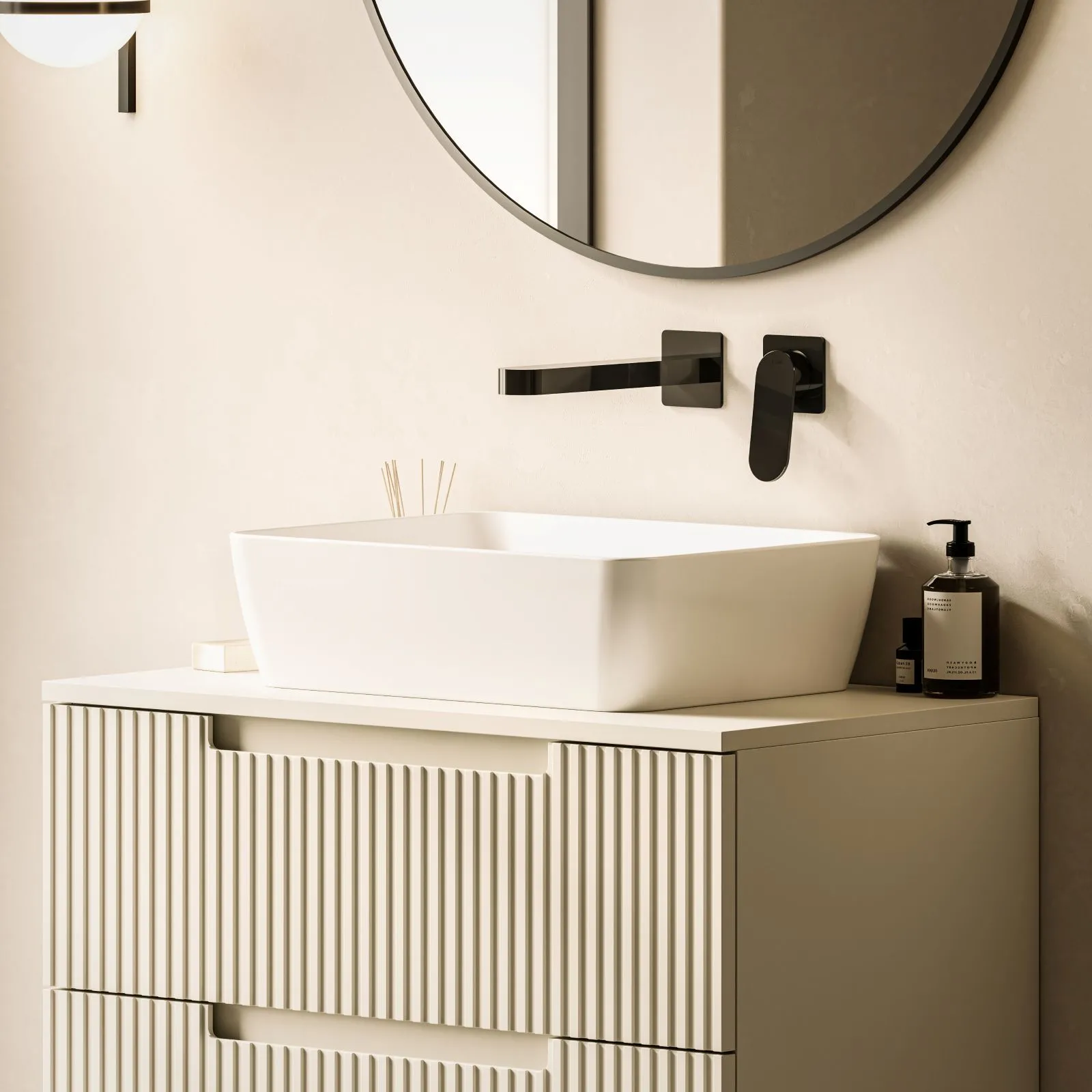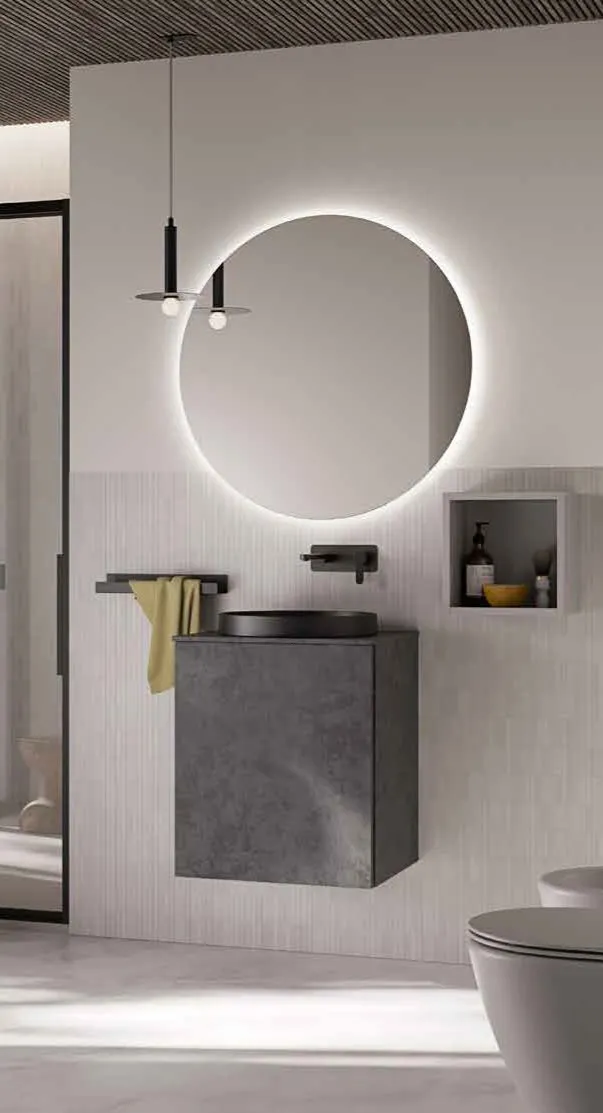 Se il lavabo, da appoggio o incassato, è mini, anche il mobile lavabo deve essere dunque proporzionato, adattandosi a forma e ingombro del bacile stesso.