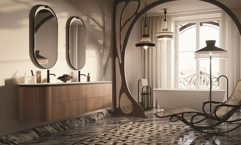 L’effetto complessivo è più caldo e domestico, lontano dall’estetica sanitaria tradizionale.