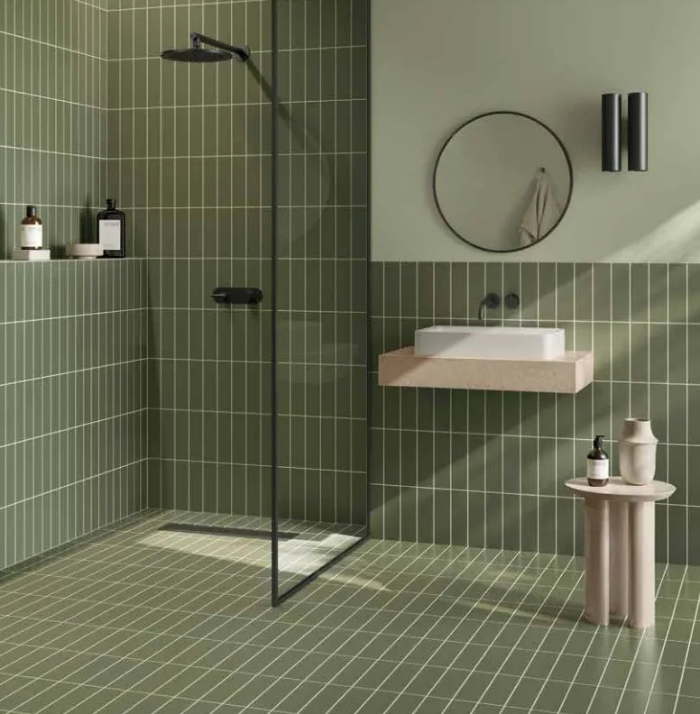 Da dettaglio tecnico invisibile, la fuga si trasforma in segno grafico consapevole. Evidenziando il reticolo tra le piastrelle, diventa parte del disegno complessivo del rivestimento e ne amplifica il carattere architettonico.