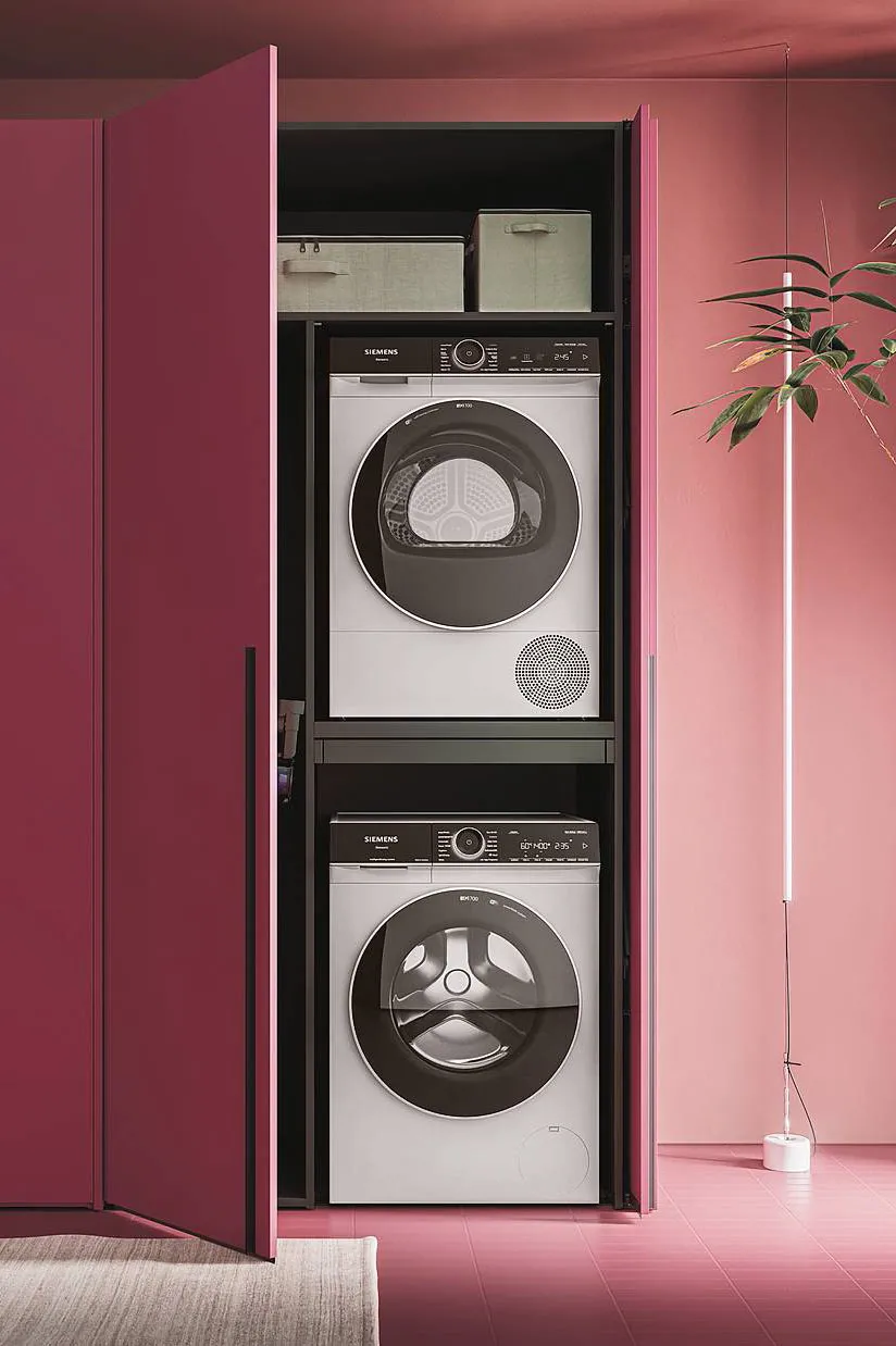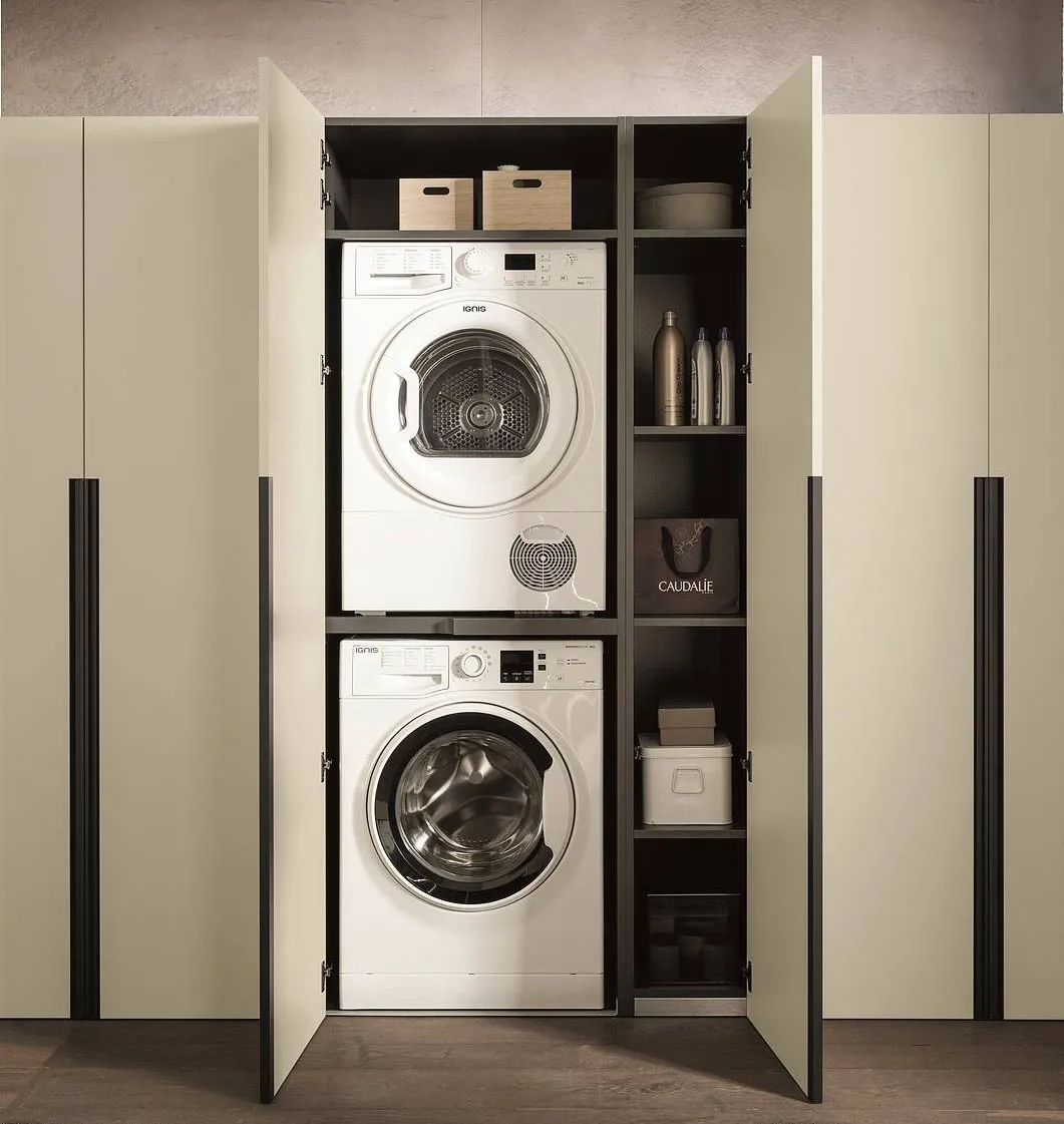 - Se possibile lavatrice soprapposta ad asciugatrice o inserita dentro armadi contenitori (armadio lavanderia).