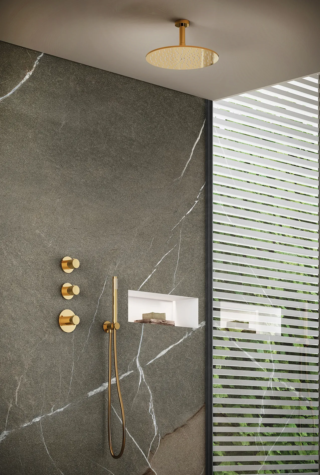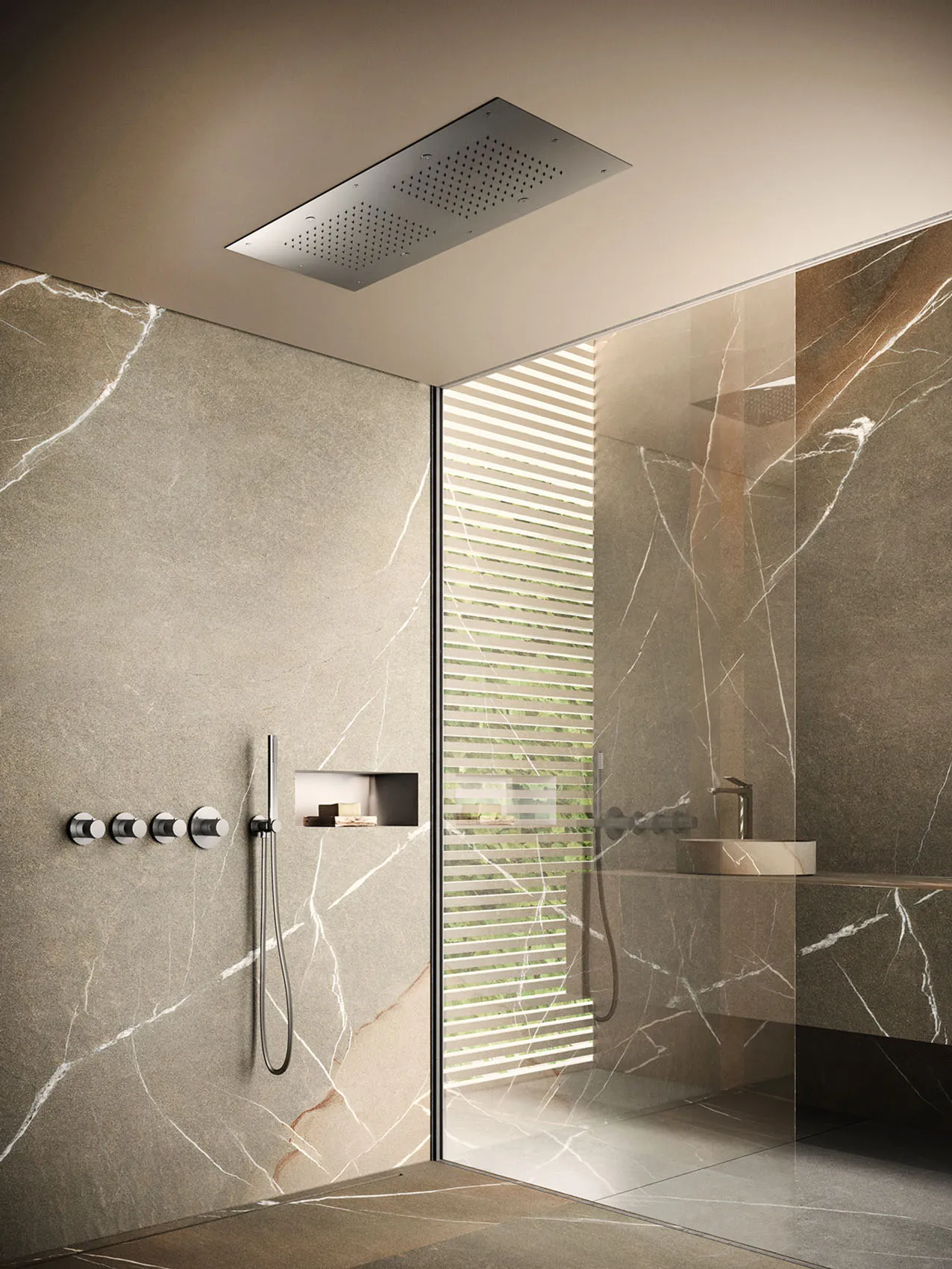 La gestione indipendente delle uscite consente di comandare singolarmente soffione, doccetta o bocca vasca, ottimizzando comfort e consumi.