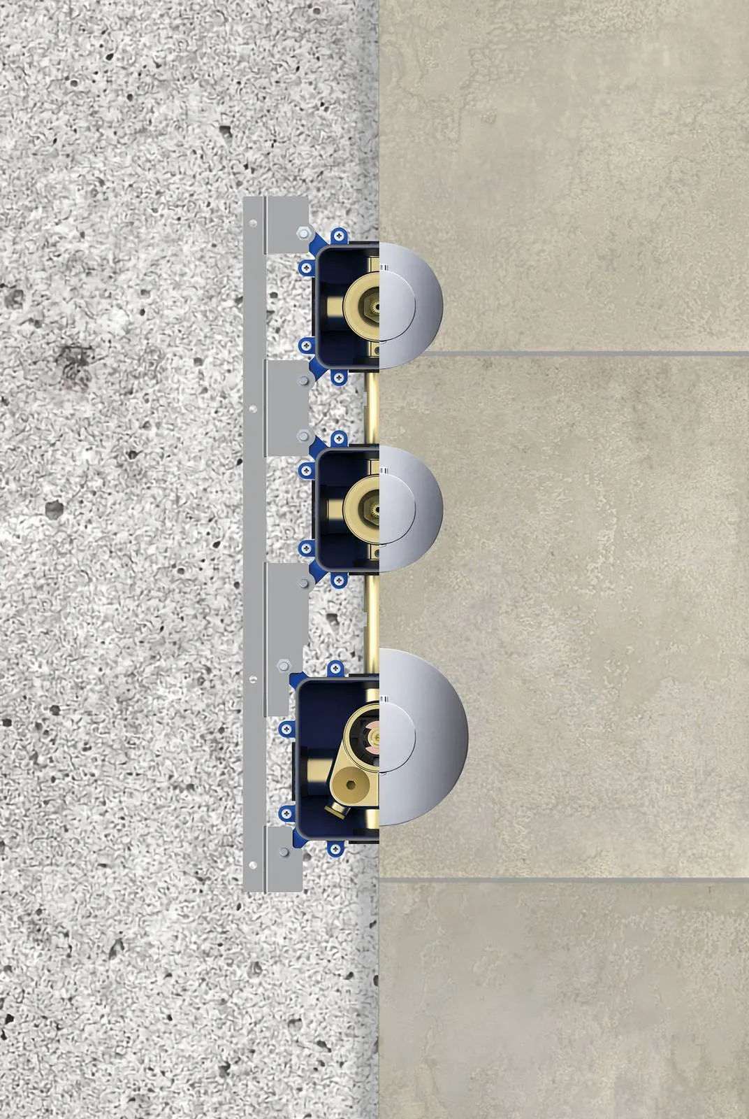 Le parti esterne che completano esteticamente il prodotto vengono fornite separatamente in un secondo momento e contengono tutte le parti di finitura del prodotto. Questo comporta dei vantaggi importanti: riduce la possibilità di errore durante l’installazione; permette qualsiasi operazione di rimpiazzo o manutenzione durante tutta la vita del prodotto; agevola la sostituzione per un eventuale restyling del bagno.