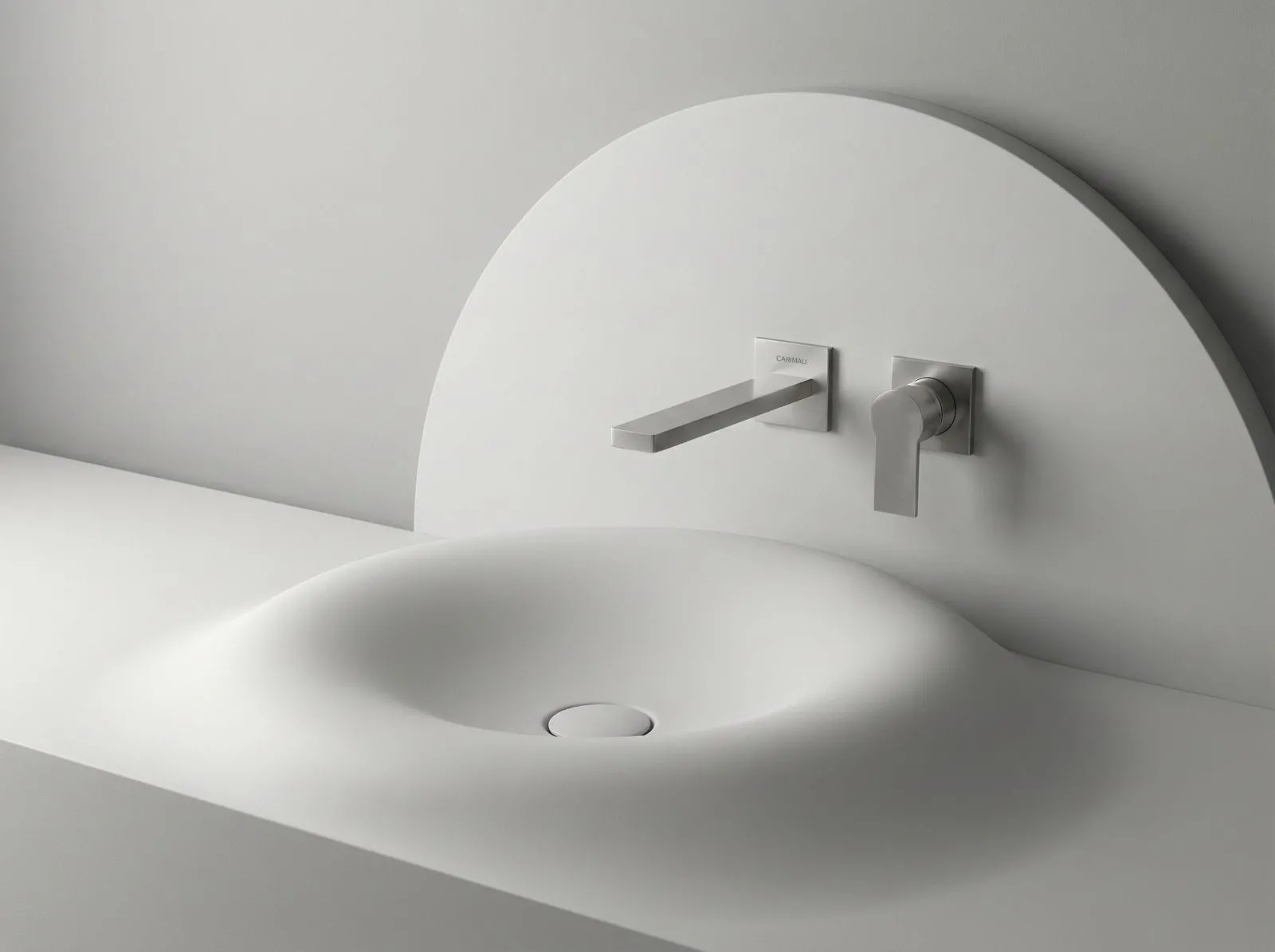 La rubinetteria si conferma uno degli ambiti più dinamici del design bagno. Da un lato, si sviluppa una ricerca geometrica pura, basata sull’incontro tra forme elementari come cerchio e quadrato, con soluzioni a parete che trasformano il rubinetto in un vero elemento architettonico.