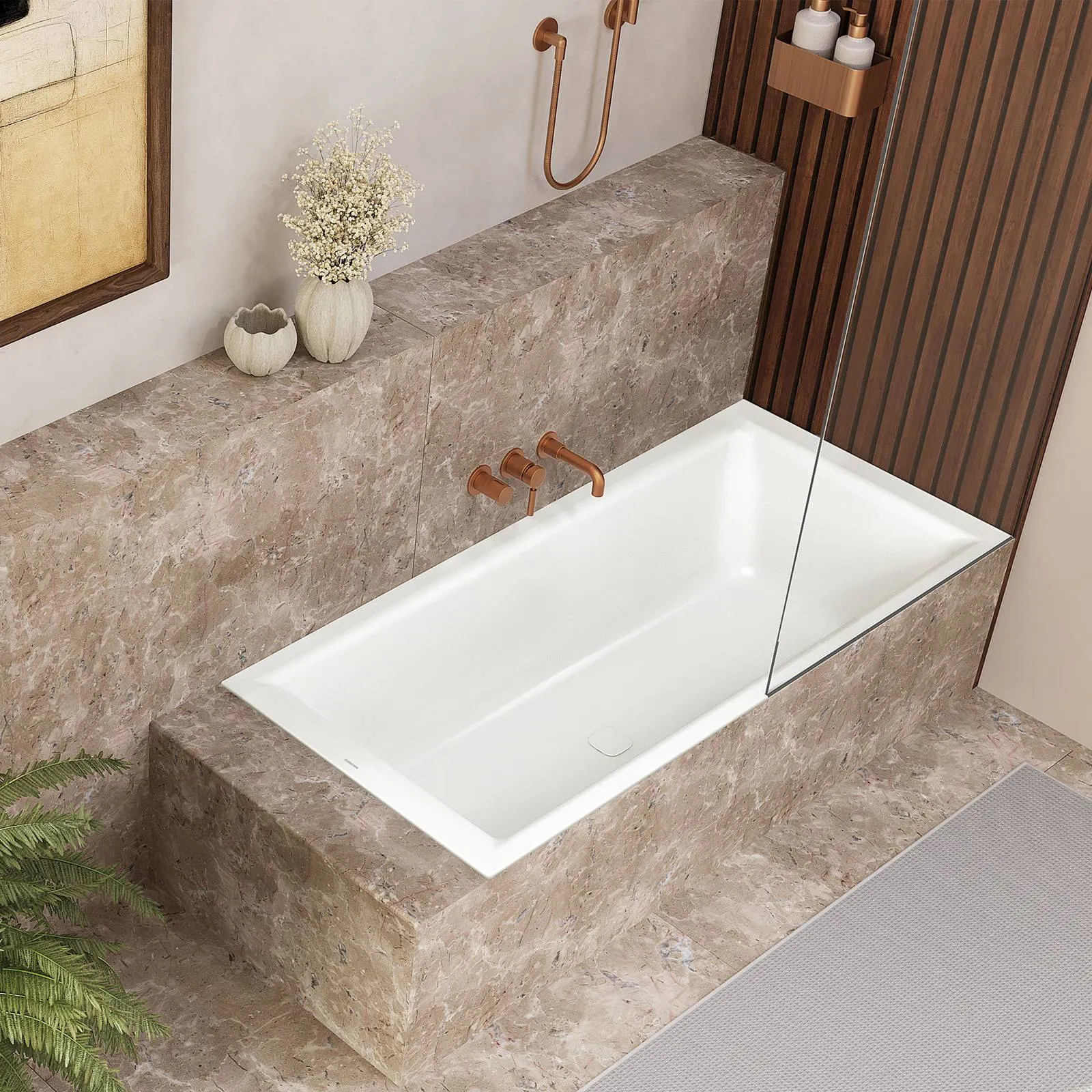 Nel 2026 il bagno tende a diventare più organico e meno tecnico: contano volumi morbidi, superfici materiche e abbinamenti caldi che rendono la vasca un punto di calma, non solo un sanitario.