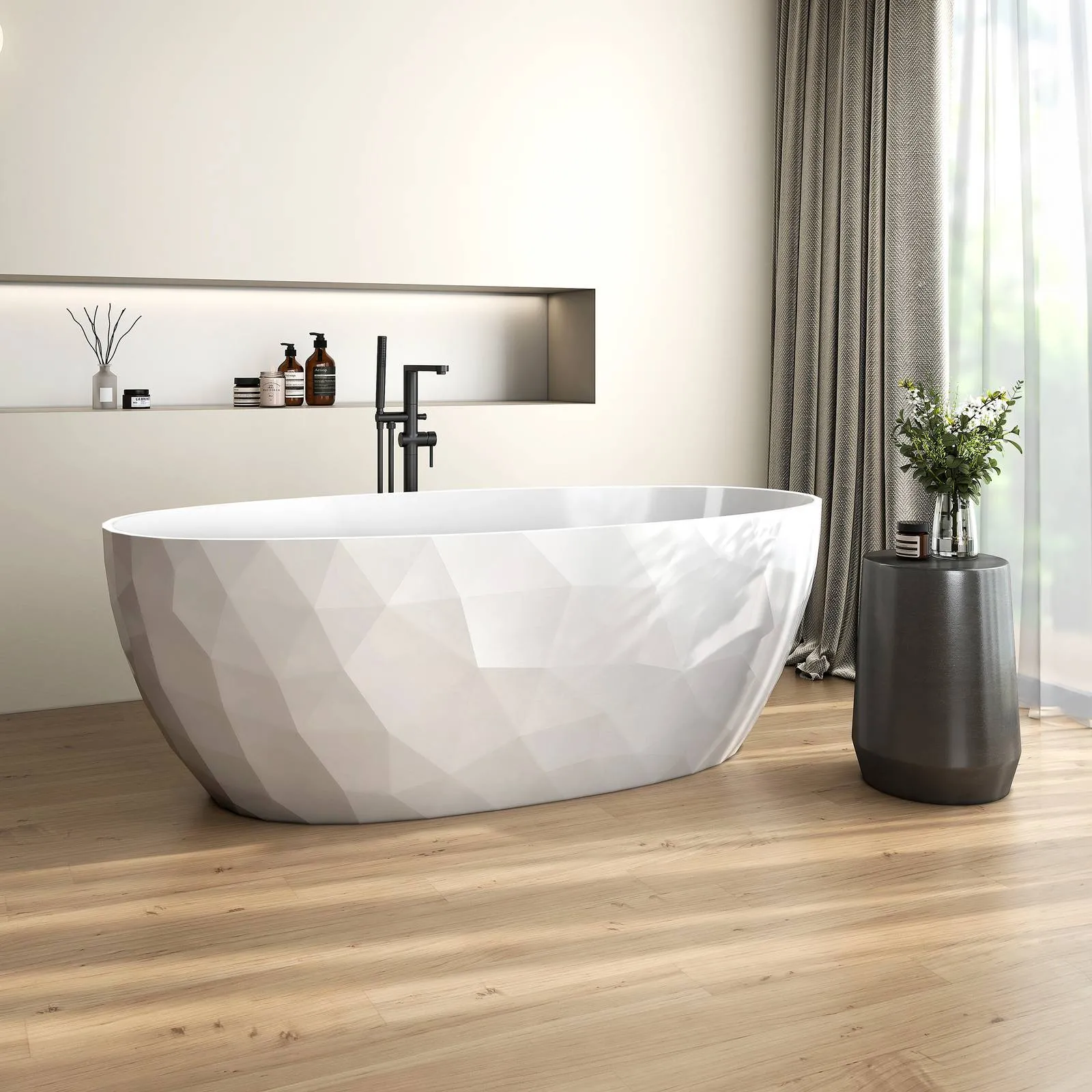 In fase di progetto, da considerare anche dove andrà installata la rubinetteria: nelle soluzioni freestanding è frequente la scelta a pavimento oppure a parete, e questo condiziona passaggi impiantistici e posizione finale della vasca.