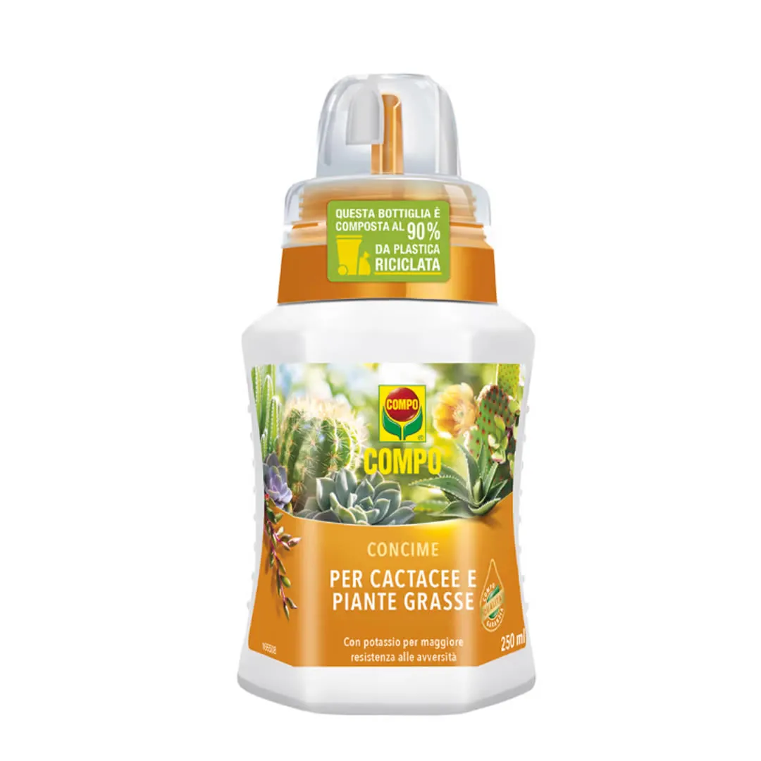 Il Concime per Cactacee e Piante Grasse di Compo rafforza la struttura della pianta e conferisce maggiore resistenza. È dotato di tappo graduato con salvagoccia. https://www.compo-hobby.it/