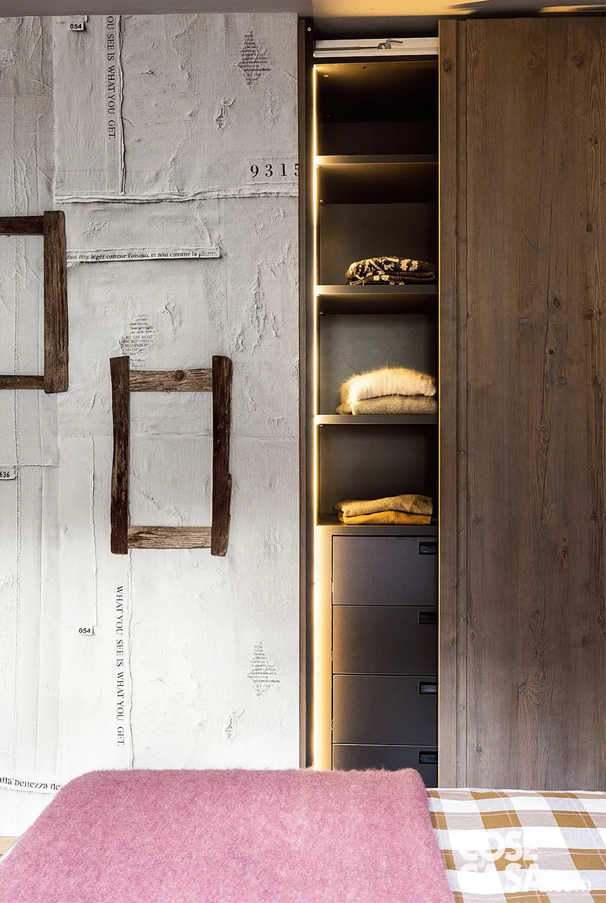 Il progetto d’arredo regala poi un tocco speciale all’insieme, giocando con carte da parati fantasia (tutte riconducibili all’ambiente alpino) posate con grande senso delle proporzioni per definire le diverse zone. E con arredi low cost accostati, dove si è reso necessario, a soluzioni su misura.