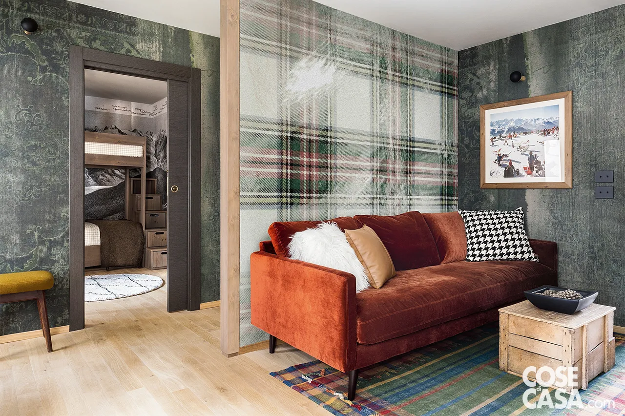 A dare la vera svolta all’appartamento è stato il progetto d’interior incentrato sull’uso architettonico della carta da parati che ha generato nuovi tagli prospettici e modificato la percezione degli spazi, con fantasie che sollecitano una nuova interpretazione del mood alpino.