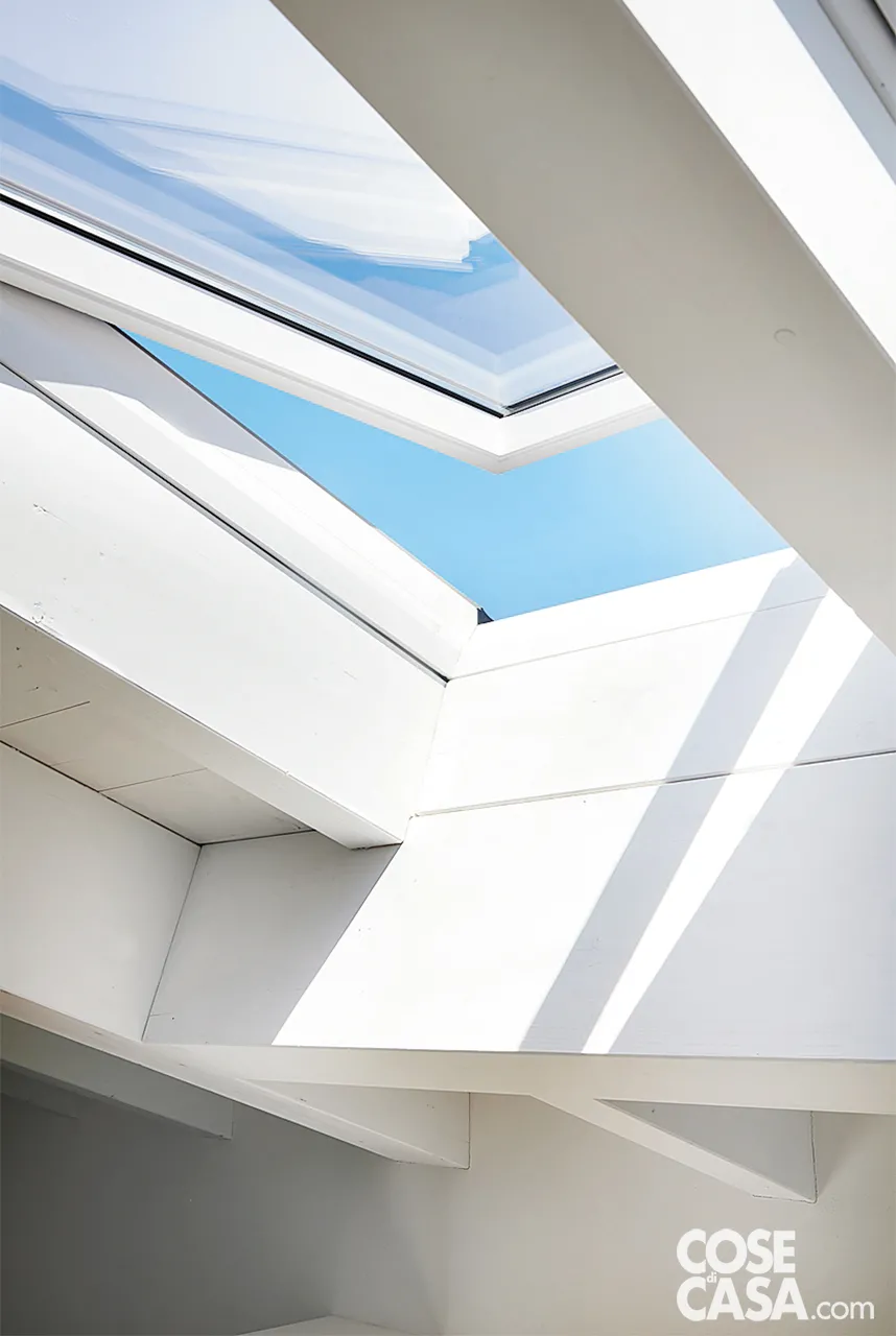 In più, le aperture disposte sul tetto hanno la capacità di far penetrare la luce in profondità negli interni: in natura, la luce si indirizza dall’alto verso il basso e poter replicare questo “percorso” anche all’interno di una casa consente di stabilire un rapporto diretto con l’ambiente circostante.