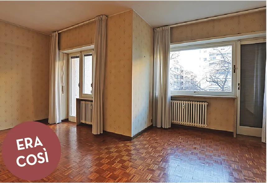 Altre modifiche importanti hanno permesso di realizzare il secondo bagno, ridimensionando quello unico esistente; e di ricavare una camera al posto del poco confortevole cucinotto. In base a una concezione più attuale dell’abitare, la zona cottura si apre ora sull’open space del living. L’appartamento gode del doppio affaccio e dispone di un piccolo balcone e di un terrazzino.
