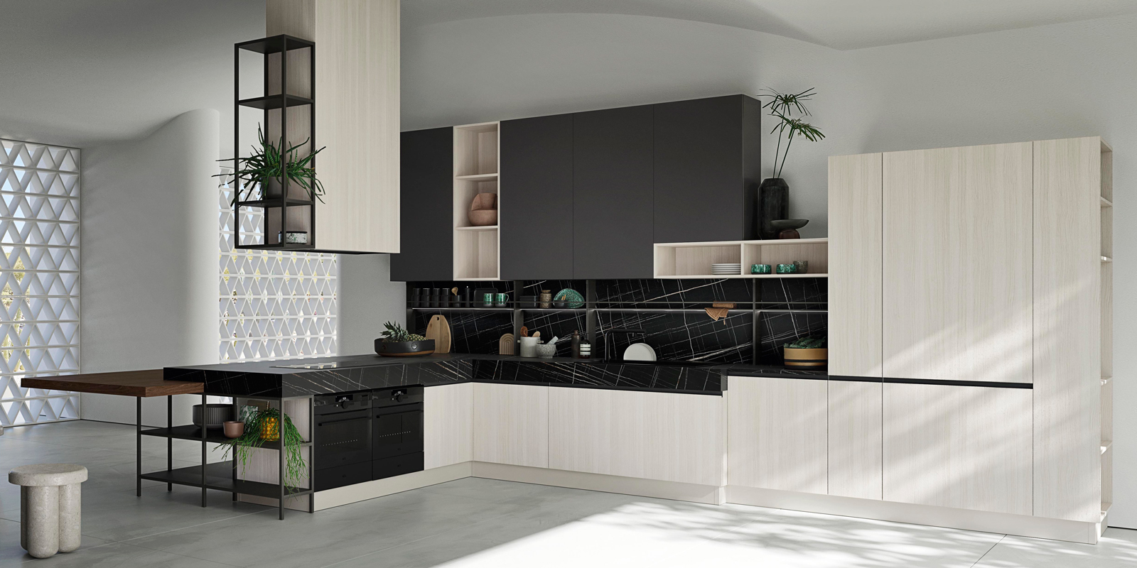 Grazie allo sviluppo verticale, consente soprattutto di sfruttare al meglio lo spazio tra top e pensili, lasciando in vista oggetti d’uso frequente oppure elementi decorativi come vasi, ceramiche e piante, sempre più presenti nelle cucine contemporanee.