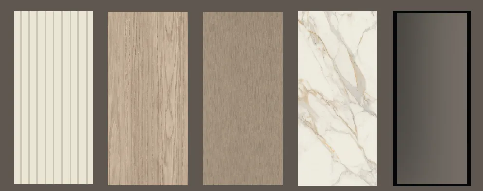 La selezione materica è calibrata per accompagnare la lettura dello spazio in modo fluido e misurato, senza contrasti marcati, valorizzando la coerenza tra i diversi elementi. La palette neutra rafforza la sensazione di equilibrio e durata nel tempo.