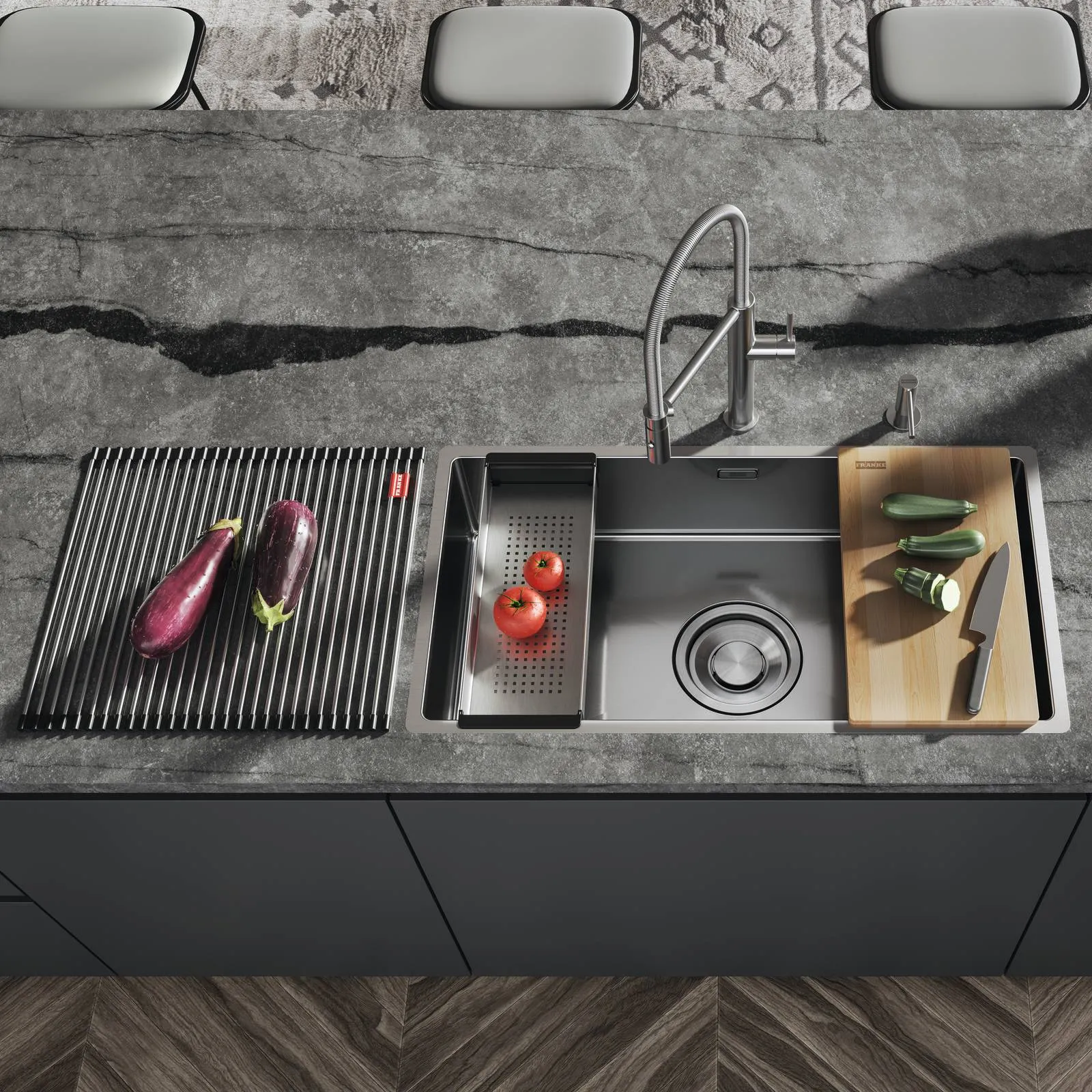 Parte integrante della gamma Mythos di Franke, Box DrainMax incarna i più elevati standard di qualità, design, prestazioni e well-living. Il risultato è un sistema evoluto che migliora concretamente l’esperienza d’uso, integrandosi con discrezione in un’estetica pulita e rigorosa.