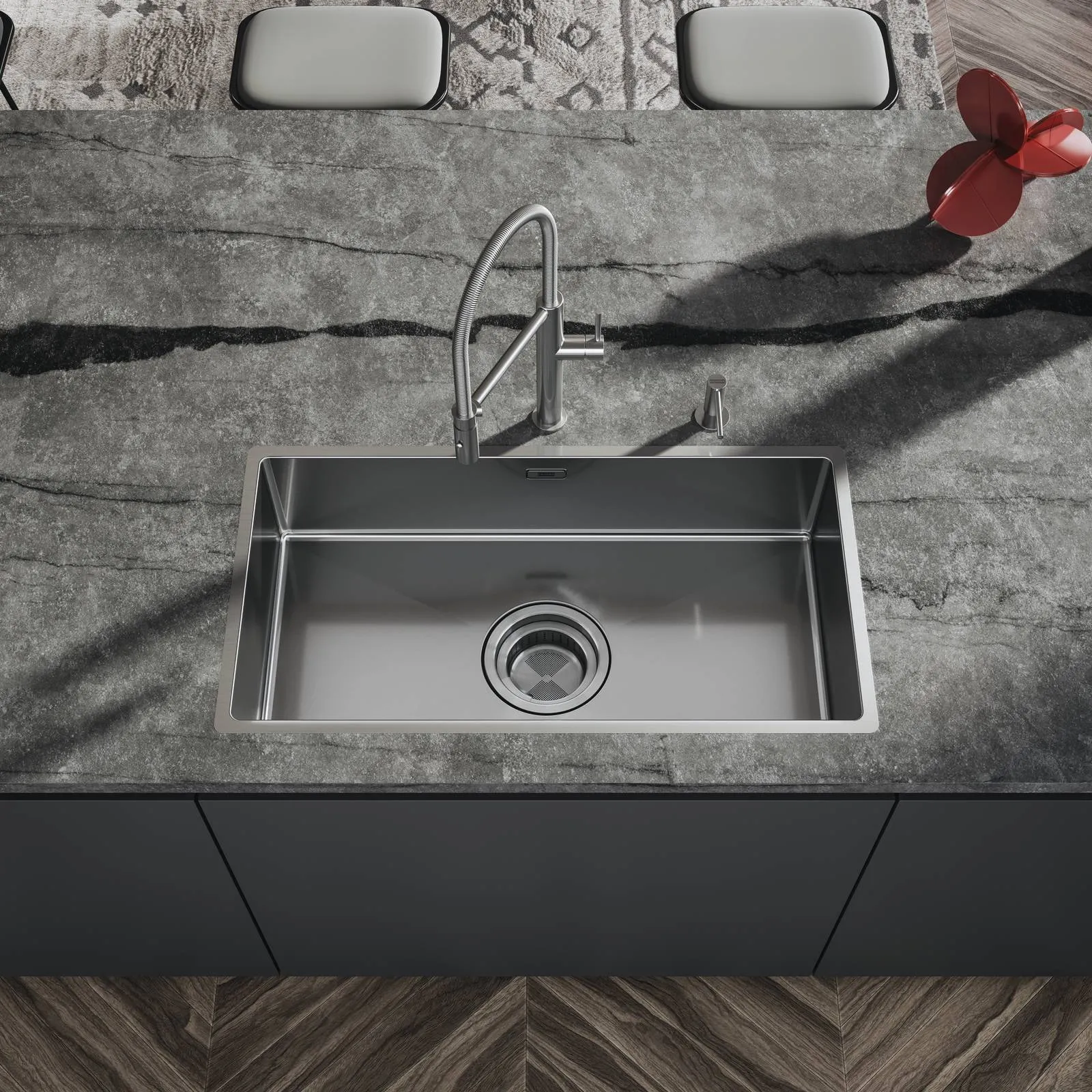 È proprio su questo livello, meno visibile ma decisivo, che si gioca oggi l’innovazione. Con le vasche Box DrainMax, Franke interviene sul cuore operativo della cucina introducendo una serie di soluzioni progettuali mirate: dallo scarico maggiorato alla riduzione del rumore, fino a una configurazione pensata per semplificare la manutenzione quotidiana.