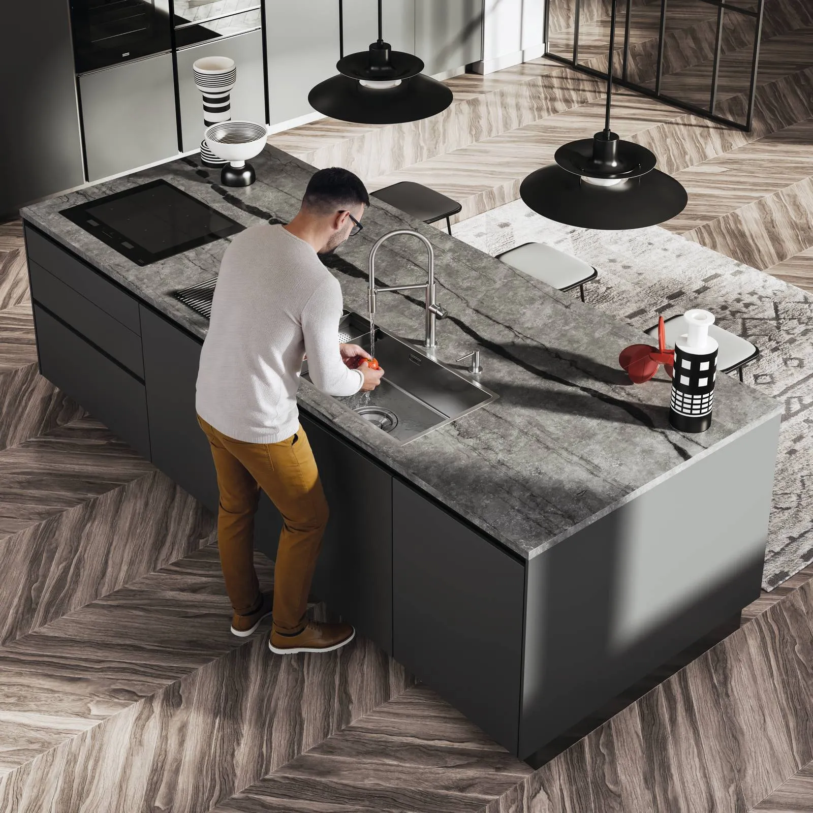 In questo modo, le vasche contribuiscono a creare un’atmosfera serena, in cui la conversazione scorre in modo naturale, anche durante la preparazione dei cibi più elaborata.
