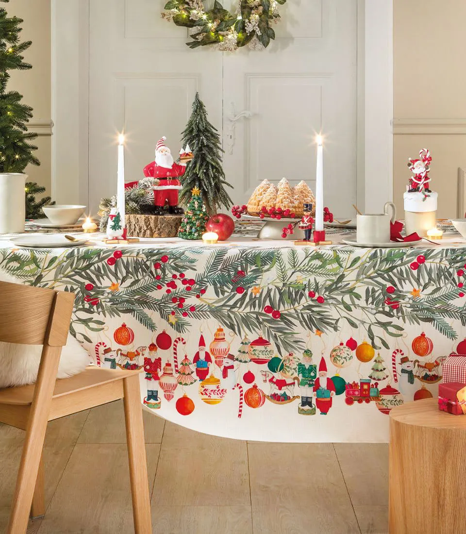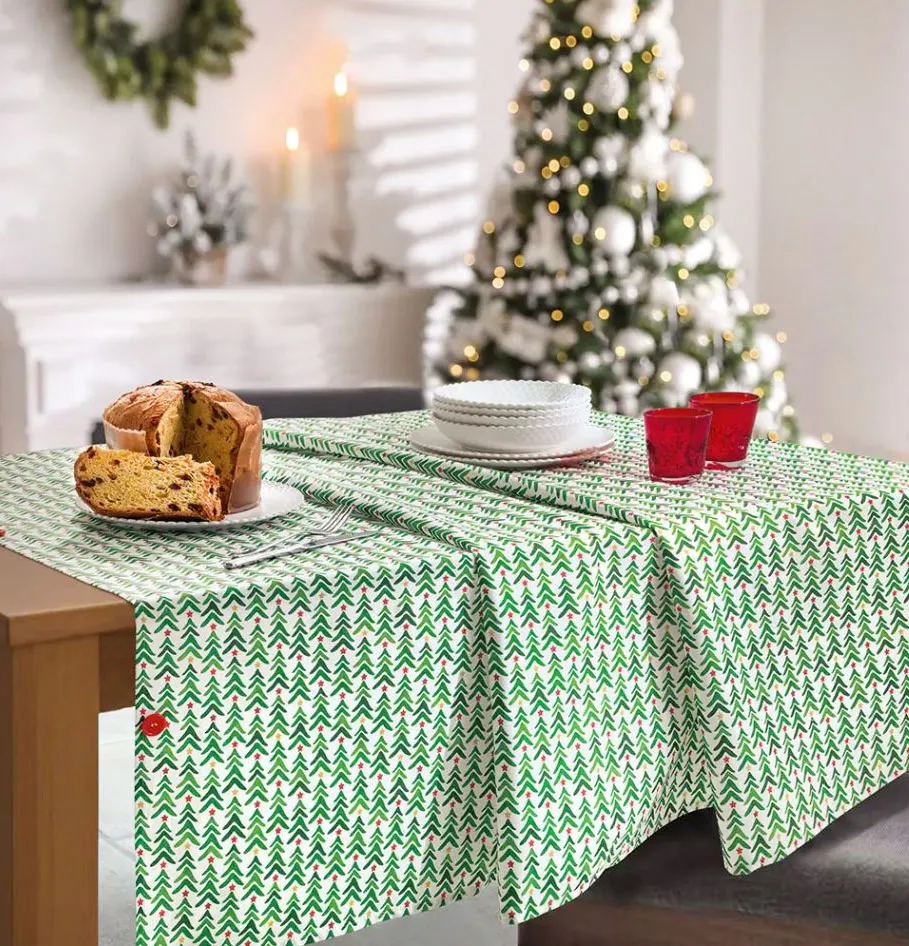 Un decoro naif ispirato alla tradizione per la tovaglia Vischio di L’Oca Nera che è disponibile in tre formati. Il tessuto in poliestere antimacchia e idrorepellente la rende piacevole al tatto e molto pratica e resistente, sopratutto con i bambini. Misura L 155 x P 155 cm. Prezzo a partire da 68 euro. https://www.locanera.it