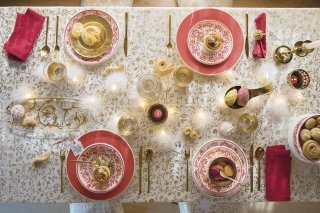 Dedicato a chi ama la magia del Natale tradizionale il servizio di piatti Christmas Eve di Tognana completamente realizzato in porcellana multicolore. Le tovagliette rotonde fungono da sottopiatti sulla tovaglia candida; le posate dorate “illuminano” la mise en place e riprendono i dettagli color oro delle stoviglie. Prezzo 99 euro (per il set da 18 pezzi). https://shop.tognana.com