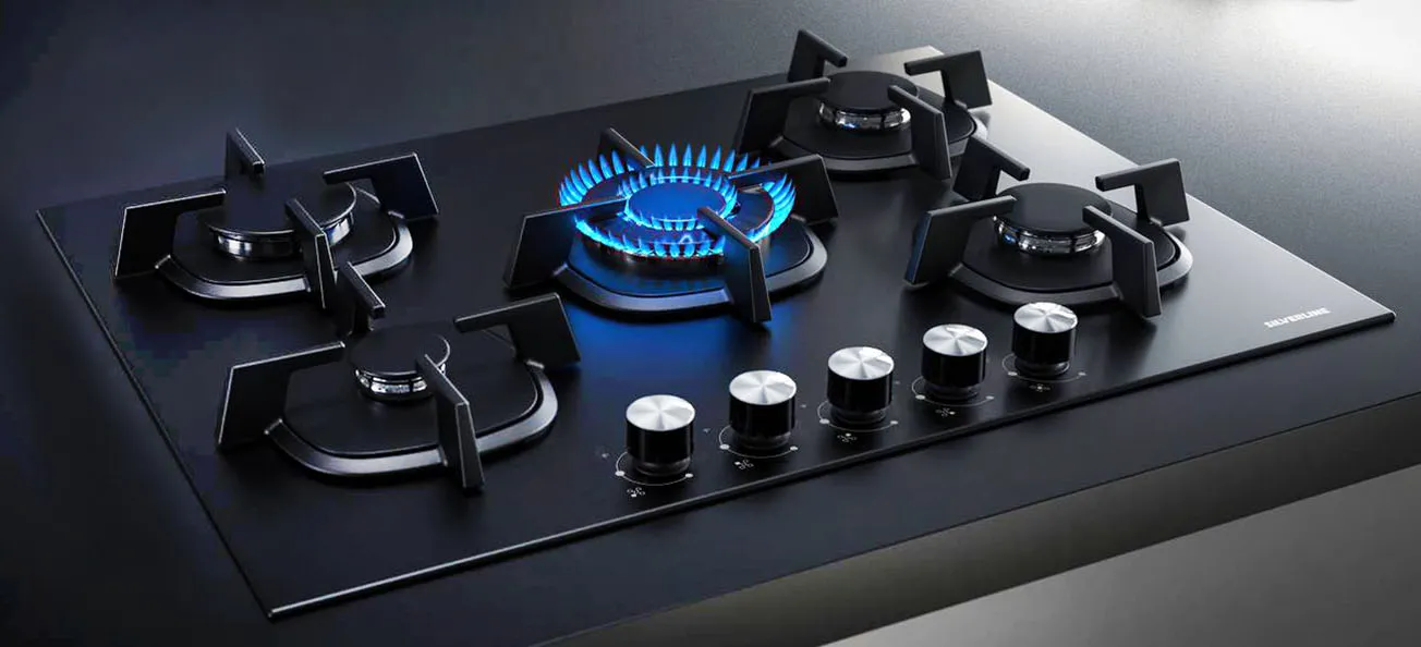 Funzionale, elegante e facile da usare, il piano a gas CS5405B01 di Silverline é dotato di 5 fuochi, griglie in ghisa e valvola di sicurezza. In vetro, ha 5 bruciatori gas, di cui uno wok da 3,8 kW, e griglie in ghisa. Largo 75 cm, l’accensione sottomanopola assicura praticità e velocità, mentre i comandi frontali ergonomici permettono un controllo preciso della fiamma. Prezzo 683 euro. https://www.silverlineitalia.com