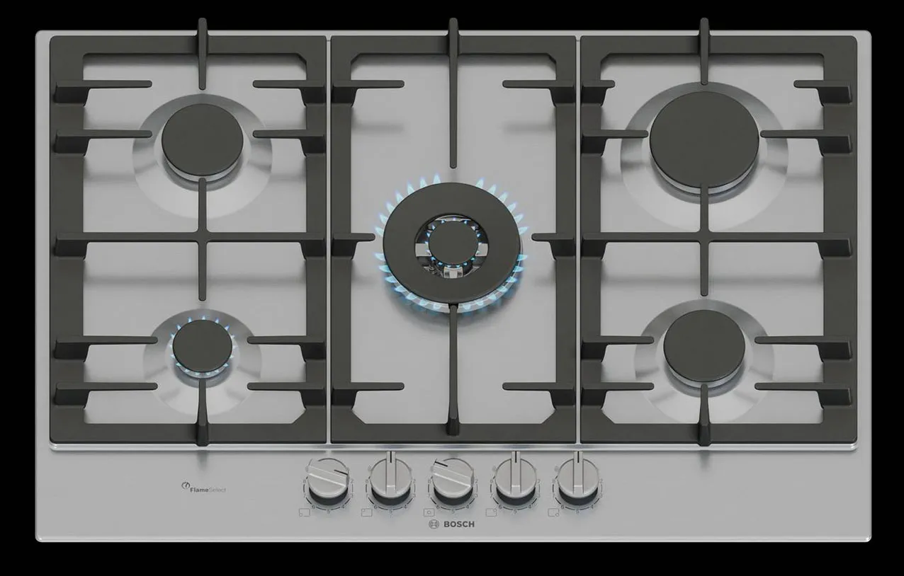 Grazie alla tecnologia FlameSelect, il piano Serie 6 PCQ7A5I95 di Bosch offre un controllo preciso della potenza erogata su 9 livelli predefiniti di intensità della fiamma. Con fornello wok, è in acciaio inox e ha griglie d’appoggio continue in ghisa, pensate per regalare stabilità alle pentole. La pulizia è resa agevole e veloce dalle manopole magnetiche removibili. Prezzo da rivenditore. https://www.bosch-home.com/it