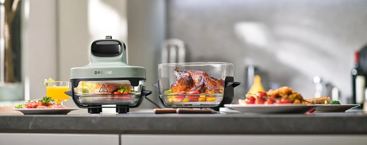 Compatta, portatile e facile da trasportare, la friggitrice ad aria 5-in-1 Tasti™ Glass di Dreame combina le funzioni di una friggitrice ad aria e di un contenitore portatile per il pranzo. È fornita con 2 contenitori in vetro borosilicato 2,5 litri e 4,5 litri ed è dotata di una funzione per la cottura a vapore. Le ciotole, resistenti agli shock termici fino a 180 °C, permettono anche una visibilità completa a 360° mentre il cibo cuoce. Ha potenza di 1.500 watt e 5 programmi preimpostati e la tecnologia 3D di circolazione dell’aria calda consente al cibo di raggiungere una croccantezza uniforme senza bisogno di essere girato. Misura L 30 x P 28 x H 31 cm. Prezzo 149 euro. https://www.dreametech.com