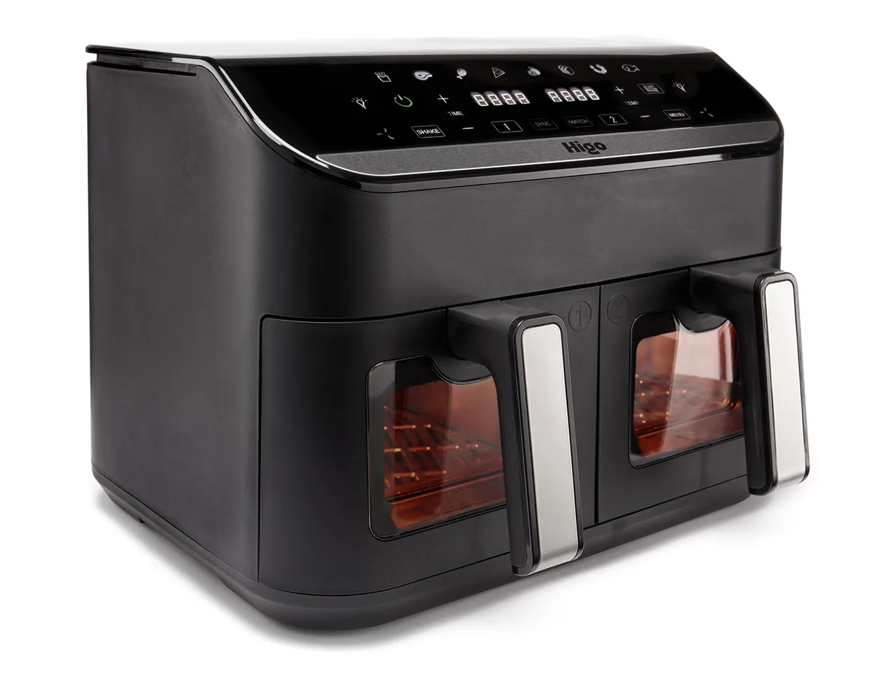 La friggitrice FA-81 di Higo offre una capacità totale 9 litri grazie ai due cestelli indipendenti da 4,5 litri che hanno avvio o fine sincronizzati. Dotata di 8 programmi preimpostati, ha display touch digitale con luce interna, doppia finestra in vetro e alert sonoro per la funzione Shake. La potenza è di 2.400 watt. Misura L 40 x P 30 x H 35. Prezzo 129,90 euro. https://www.higohome.it